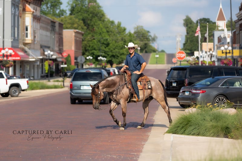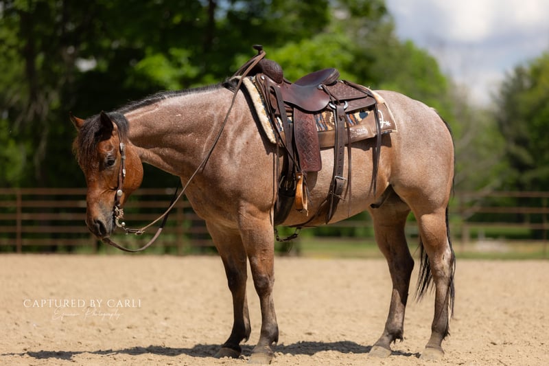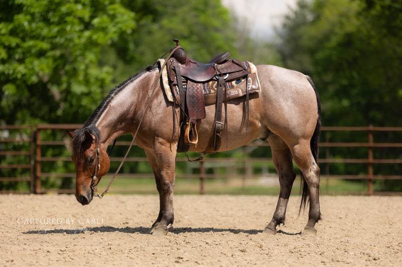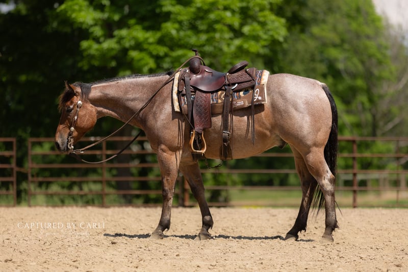 𝐉𝐨𝐧𝐞𝐬 𝐅𝐚𝐦𝐢𝐥𝐲 & 𝐕𝐞𝐫𝐬𝐚𝐭𝐢𝐥𝐢𝐭𝐲 𝐇𝐨𝐫𝐬𝐞𝐬' ✯𝑳𝒆𝒈𝒆𝒏𝒅𝒔 𝒐𝒇 𝒕𝒉𝒆 𝑺𝒖𝒎𝒎𝒆𝒓✯ Happening now thru THURSDAY | AUGUST 21st - Available EXCLUSIVELY on HorseBid's website! For more details and to register visit: www.Horsebid.com CONSIGNOR CONTACT: Jones Family and Versatility Horses 618-535-9966 LOCATION: Lewistown, IL BREED: Quarter Horse REGISTERED: Yes REGISTERED NAME: Blue Metallic Pistol COLOR: Bay Roan HEIGHT: 14.3 AGE: 5 GENDER: Gelding If you’re in the market for a top-shelf gelding with the looks, bloodlines, and brain to go in absolutely any direction, take a good look at Cotton. This 5-year-old AQHA gelding stands 14.3 hands and is an own son of the standout sire Metallic Malice—bringing both talent and eye appeal to the table. Cotton has been used extensively for all aspects of ranch work and is as solid and dependable as they come. He’s been there, seen it, and handled it with a cool, quiet mind. Whether you’re gathering cattle, dragging calves, or riding pens, Cotton handles the job with professionalism and a good attitude every time. He’s surefooted outside, confident alone, and always willing to step up to the task. One of the first things you’ll notice about Cotton is his personality—this gelding loves people. He’s the type that meets you at the gate, enjoys attention, and forms a bond with his rider. He’s got that rare mix of charisma and kindness that makes him truly one of a kind. Under saddle, Cotton has a fancy, well-rounded handle—soft in the face, responsive to your leg, and smooth-moving. He neck reins, moves off your seat, stops deep, and turns around correctly. Yet for all his training, he stays quiet, gentle, and forgiving. Cotton has the kind of mind that allows a green rider to learn safely while still offering the buttons and feel an experienced hand can appreciate and enjoy. He’s ready for the ranch versatility pen, would make a super rope horse prospect, or could easily go on to excel in any number of western performance disciplines. More than anything, Cotton is the kind of horse that just wants to please. He’s happy anywhere you take him—arena, pasture, trail, or show pen—and he brings consistency and confidence every time. Safe, broke, versatile, and personable—Cotton truly is the total package. Horses like him don’t come around every day, and he’s the kind you’ll enjoy owning for years to come.