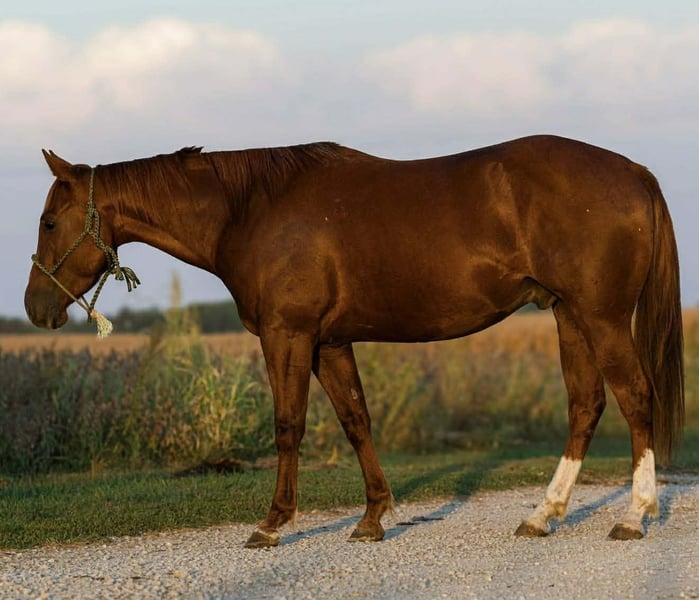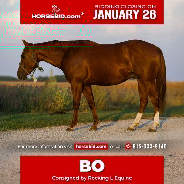 𝐉𝐀𝐍𝐔𝐀𝐑𝐘 ⭐️𝑨𝒍𝒍 𝑺𝒕𝒂𝒓 𝑳𝒊𝒏𝒆𝒖𝒑⭐️ Happening now thru MONDAY | JANUARY 26th - Available EXCLUSIVELY on HorseBid's website! For more details and to register visit: www.Horsebid.com CONSIGNOR CONTACT: Rocking L Equine 815-333-9140 LOCATION: Joy, IL BREED: AQHA REGISTERED: Yes REGISTERED NAME: Can’t Kick Jack COLOR: Sorrel HEIGHT: 14.3 AGE: 5 GENDER: Gelding Can’t Kick Jack 2021 AQHA Gelding | 14.3 HH | “Bo” Can’t Kick Jack, known around the barn as Bo, is a standout 2021 AQHA gelding that combines a gentle, honest mind with real-world ranch experience and a solid show foundation. Standing a handy 14.3 hands, Bo is the ideal size for a wide range of riders—easy to get on and off, stout enough to do a full day’s work, yet athletic and responsive with plenty of feel. Bo has been successfully shown in ranch horse classes, where he has proven himself to be broke, correct, and consistent. He travels quietly through his gaits, has a nice, correct stop, and a pretty, cadenced turnaround that stays smooth and balanced. He is soft in the bridle, willing, and straightforward to ride—no gimmicks, just a good, honest horse that does his job. Outside of the show pen, Bo has extensive real ranch experience. He has been ranched on extensively, including dragging calves to the fire, doctoring calves in the pasture, and general day-to-day ranch work. He stays level-headed in pressure situations, handles cattle quietly, and does not get frazzled when things get fast or unpredictable. This is a gelding that understands work and takes care of his rider. Bo is also an excellent trail and pleasure mount. He is traffic safe, confidently rides out alone or in a group, and goes willingly over logs, through thick brush, and across varied terrain. He is not spooky, does not buck, rear, or bolt, and is safe enough that kids can ride him. He has a kind disposition and a forgiving nature, making him suitable for a family setting or a program where multiple riders will enjoy him. On the ground, Bo is a true gentleman. He stands tied, stands quietly for the farrier, stands to be bathed, stands to mount, clips easily, and loads and hauls without issue. He is easy to handle in the barn and around other horses. He has no bad habits—no cribbing, weaving, or stall vices. Bo is 100% sound, and recent X-rays are on hand for buyer confidence. He has been well cared for, maintained properly, and kept in consistent work. This gelding is the kind that is hard to find—broke, seasoned beyond his years, gentle, and versatile. Whether you are looking for a ranch horse, a ranch show prospect, a safe trail partner, or a dependable all-around family horse, Bo checks all the boxes.