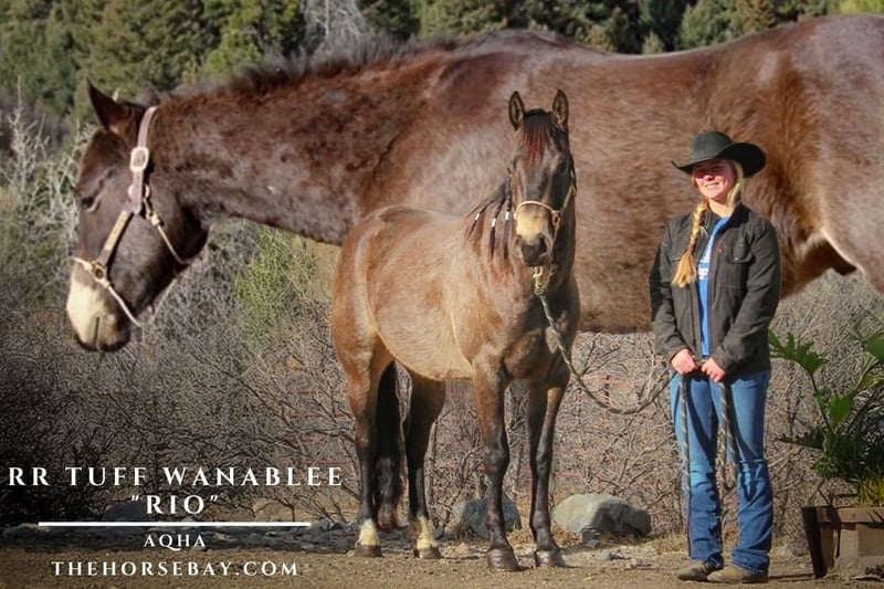 RR Tuff Wanblee (PC Tuff Dual x Rockin Wanblee) is a 2021 AQHA buckskin gelding standing 15.2 hands tall. Rio (Barn Name) is a puppy dog of a horse. This gelding loves being around people and really enjoys head and ear scratches. Rio is great on the trail; he crosses water, navigates obstacles, jumps right into the trailer, and is generally a pleasure to have around. He is easy to catch, gets along with everyone, and anything. Rio has always been sound and maintains a healthy weight on hay alone. Rio has even been featured in some local rail class shows. Rio gives it his all every day, but he still needs help to develop a balanced lope. He will pick up his correct lead, but as he grows, he has lost some of his athletic ability to pick up a nice, balanced trot to canter transition. Rio has a bright and promising future as a team member.