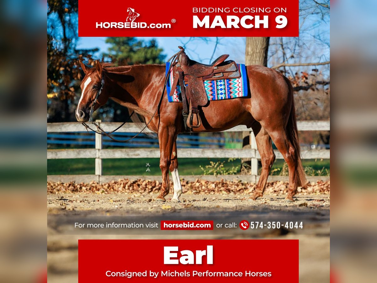 ℳ𝒶𝓇𝒸𝒽 ♦️𝐑𝐈𝐃𝐄𝐑'𝐒 𝐂𝐇𝐎𝐈𝐂𝐄♦️ Happening now thru MONDAY | MARCH 9th - Available EXCLUSIVELY on HorseBid's website! For more details and to register visit: www.Horsebid.com CONSIGNOR CONTACT: Michels Performance Horses 574-350-4044 LOCATION: BREED: AQHA REGISTERED: Yes REGISTERED NAME: Platinum 007 COLOR: Sorrel HEIGHT: 15.1 AGE: 5 GENDER: Gelding Meet Earl, officially registered as Platinums 007, a striking 15.1-hand gelding who stands out with his stout build, flashy chrome, and a gorgeous long flaxen mane paired with a thick, full tail. He is well bred, eligible for all major reining events, and has successfully shown in the Open Levels at several larger shows. Earl is an NRHA money earner, proving his ability and consistency in the show pen while offering the look and presence buyers are searching for. Beyond his success in reining, Earl is incredibly safe and versatile. He is sound, has no vices, has been roped off of, and is comfortable being ridden outside, making him a reliable partner both in and out of the arena. With a calm, level-headed demeanor, he is naturally more “whoa than go,” easy to ride, and confidence-boosting, yet still responsive and willing when asked to perform. Earl’s maneuvers are a highlight of his resume. He features an outstanding sliding stop, strong and correct spins, and beautifully low-headed, fancy circles. He can long trot all day, making him an excellent candidate for the Ranch Riding and Ranch Versatility arenas as well. With his talent, disposition, and eye-catching appearance, Earl is a high-quality gelding suited for a variety of riders and disciplines and is ready to continue excelling wherever you point him.