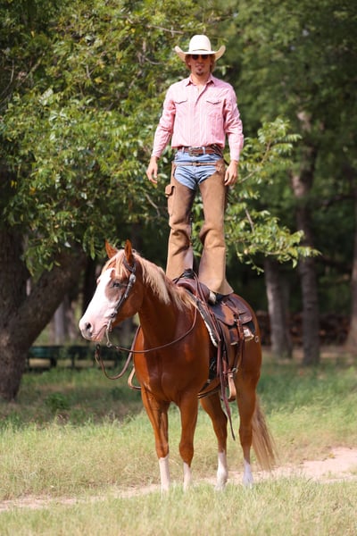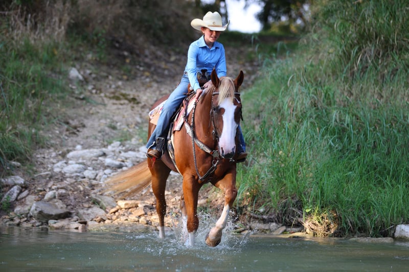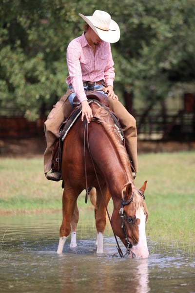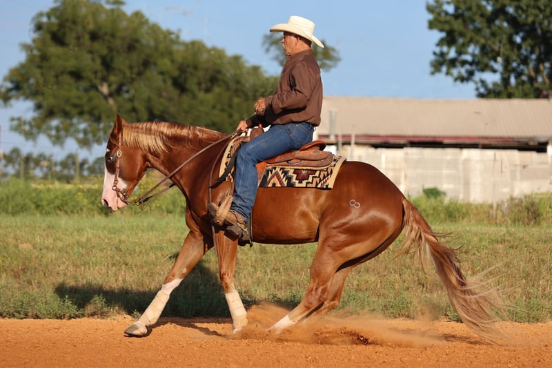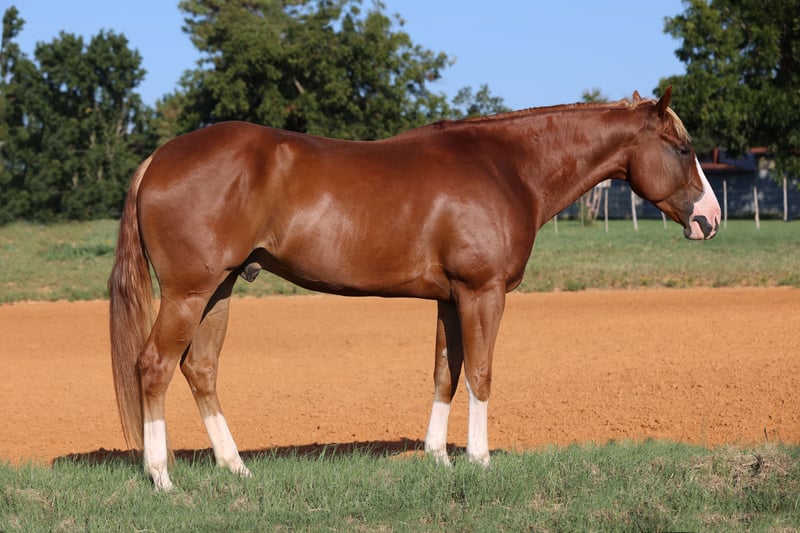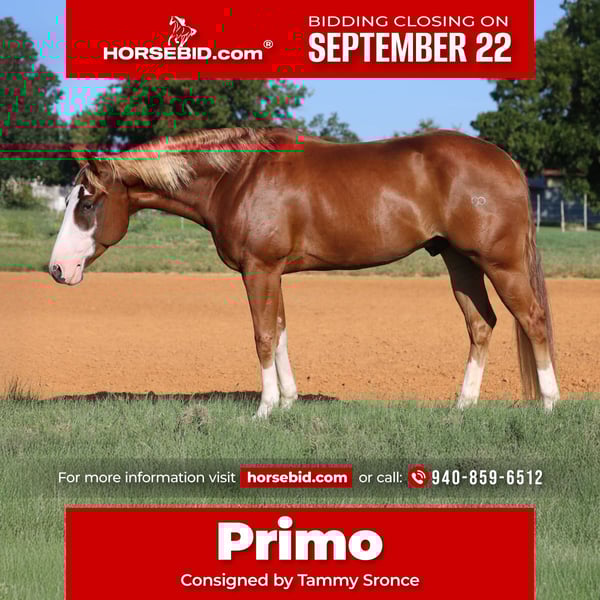 🍁𝒕𝒉𝒆 𝐅𝐀𝐋𝐋 𝑺𝒑𝒆𝒄𝒕𝒂𝒄𝒖𝒍𝒂𝒓🍁 Happening now thru MONDAY | SEPTEMBER 22nd - Available EXCLUSIVELY on HorseBid's website! For more details and to register visit: www.Horsebid.com CONSIGNOR CONTACT: Tammy Sronce 940-859-6512 LOCATION: Weatherford, TX BREED: AQHA REGISTERED: Yes REGISTERED NAME: THE JEWELED GUN COLOR: Sorrel HEIGHT: 15.1 AGE: 4 GENDER: Gelding Double registered (AQHA/APHA) gelding, safe for the whole family! Meet Primo, a gorgeous 4-year-old sorrel gelding with a flaxen mane and tail. Chromed out with a unique blaze and four white socks, he turns heads everywhere he goes! Sired by SPOOKS GOTTA GUN ($81,637 NRHA) and out of NCHA money producing mare JEWELS MAGNOLIA (sired by LENAS JEWEL BARS $70,656 NCHA). He has a clean genetic panel. Professionally started, Primo has a solid reining foundation and was then trained by multiple CMSA World Champion cowgirl Tammy Sronce for cowboy mounted shooting. He has successfully competed throughout 2026 in the mounted shooting arena, a money earner at every competition. Primo was hauled extensively to gain experience, and has wins in ranch riding, ranch trail and horsemanship! Primo hauls quietly, carries flags and he was even decorated in Christmas lights for the evening downtown Christmas Parade of Lights! Primo is one of the most easy-going guys you’ll meet! He is happy in a stall, or he can live with other horses in the pasture. He is easy to catch, saddle, mount and wash. He walks on a soft rein, jogs, and lopes. He will collect in the bridle, back, spin, and move laterally. He’s smooth to ride across all gaits. He’ll side pass logs, go over bridges and jump. Swing a rope off him, shoot guns off him, pick up barrels on him and move them around the arena. Ride him bareback, ride double, he couldn’t care less. You’ll never guess he was only 4 years old! Compete off him in mounted shooting and ranch riding or take him trail riding. The hard work is done, now he is ready to enjoy. Whatever you want to do, he’s your guy! Watch his video to see how truly gentle and versatile he is—ridden by experienced, novice, and young riders alike. We welcome questions, visits, and pre-purchase exams. Tammy Sronce 940.859.6512 (call/text).