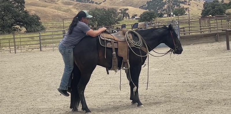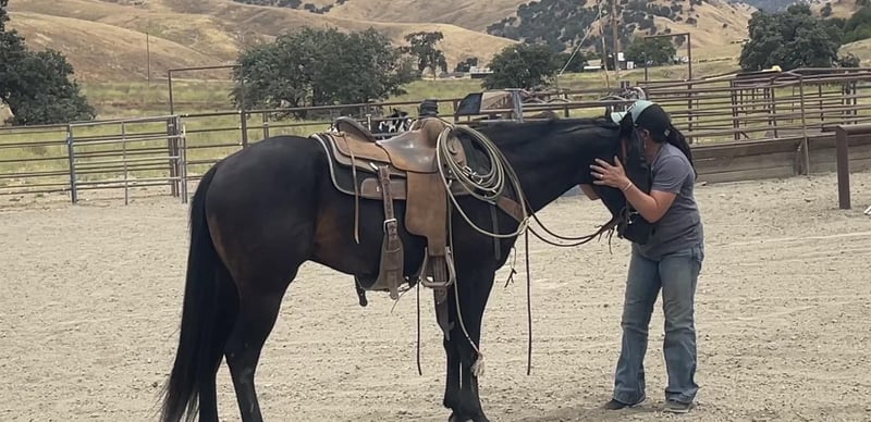 ONLINE AUCTION Place your bids at www.PlatinumEquineAuction.com Starting Bid $3500 Auction ends July 7th, 2024 Need a new saddle? Check out White Rock Saddles on our website or Facebook! Rc Poco Royal King Your dream horse awaits! Zoro AQHA 2021 is a show stopper black gelding currently standing 14.3. He is sired by the great Kelly’s Blue King AQHA – NFQHA blue roan 90 percent foundation bred stallion who goes back to the great Poco Bueno known for their great minds and athletic ability and are extremely versatile and he has clearly passed it down to Zoro. I have to say at my age there are not many young horses I trust and I trust this horse whole heartedly. He is gentle and has no spook to him at all he’s amazingly calm and easy going. He has been started correct with natural horsemanship method. He rides with a nice low headset and uses his body correctly. He lopes beautiful circles and is crossing over nicely in his turn around. He responds to leg cues and will arch and counter arch with the slightest touch. This boy is extremely gentle for his age and takes everything asked of him in stride. He has been used to gather cattle all winter and even branded a few calves and has done everything he’s been asked. He is sure footed and easy to handle will go out alone or with others and doesn’t mind riding off and leaving the herd. He is cowey and confident crosses water, logs and has seen tons of wildlife. We have desensitized him to the ball, tarp and flag and he will not bat an eye at any of it. Zoro has been around some trail obstacles and does great with new things. He has been to town and isn’t bothered by cars or loud noises. He is very willing and adaptable with the most amazing mind and temperament. He ties,clips and bathes is great for the farrier and vet. This boy has an amazing future and could go in any direction great trail partner, extreme ranch obstacle, ranch, rope, or performance horse the possibilities are absolute endless. He has handled time off great and acts like he never missed a day off he has no bad habits and is super easy to be around, handle and ride he is extremely gentle acts like a horse well beyond his years. This boy Will absolutely make everyone notice him with his beauty and style. He will be the Apple of you’re eye and barn favorite. If you would like to come take Zoro for a spin or have any question contact Longhorn Ranch call Dina 831-537-1915 Located in Paicines, CA. ONLINE AUCTION Place your bids at www.PlatinumEquineAuction.com Starting Bid $3500 Auction ends July 7th, 2024 Need a new saddle? Check out White Rock Saddles on our website or Facebook!