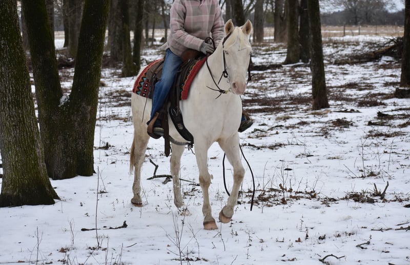 ❤️🔥𝑩𝒆 𝑴𝒊𝒏𝒆 𝐒𝐄𝐋𝐄𝐂𝐓❤️🔥 Happening now thru MONDAY | FEBRUARY 9th - Available EXCLUSIVELY on HorseBid's website! For more details and to register visit: www.Horsebid.com CONSIGNOR CONTACT: Leah Long 641-895-8175 LOCATION: Sulphur Springs, TX BREED: QH REGISTERED: No REGISTERED NAME: Mayo COLOR: Cremello Tobiano HEIGHT: 14.2 AGE: 6 GENDER: Gelding ✨ Mayo – Pretty, Polite, and Packed with Personality ✨ Mayo is 6 year old striking 14.2-hand cremello tobiano gelding with the kind of personality that makes him impossible not to love. He is incredibly gentle, kind, and honest, with a heart as good as his looks. Mayo absolutely adores attention, especially from kids and soaks up every bit of love he can get. Whistle for him and he’ll come running to put his head right in the halter. He is easy to catch, leads quietly, loads with no fuss, ties patiently, bathes well, and stands like a gentleman for the farrier. He is uncomplicated and a pleasure to be around on the ground. Under saddle, Mayo is a confident and willing partner. While he has been ridden by kids and is always gentle and respectful, he is best suited for an intermediate rider as he has a lot of buttons and is very soft in the face. He responds well to his rider, stays honest, and is enjoyable to ride for someone who appreciates a responsive horse. Mayo is a phenomenal trail horse and will cross absolutely anything you point him at steep ditches, logs, water, and rough terrain always taking care of his rider. He has been used outside to push and pen cattle, has been started on tracking the dummy, and shows a great mind for working outside. He is also a versatile gelding with experience beyond the trail. Mayo has dabbled into jumping and has had some reining training in the past, making him a well rounded horse that’s happy to try whatever job you give him. To top it all off, Mayo is eligible for PtHA papers. If you’re looking for a sweet, honest, eye catching gelding with a great mind and a lot of potential, Mayo is truly one of a kind, the kind everyone in the barn falls in love with.
