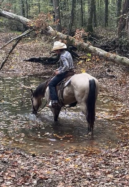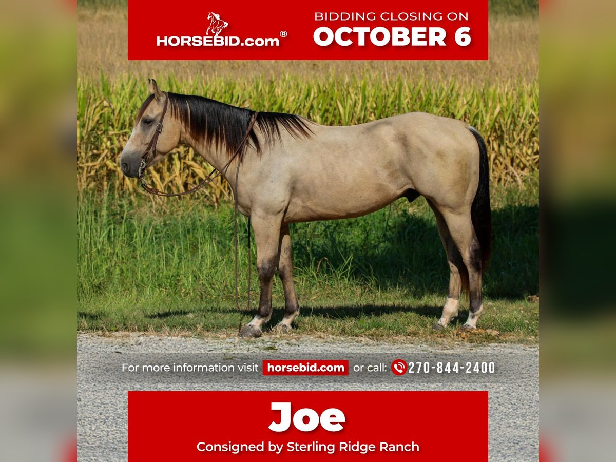 🍂 𝓐𝓾𝓽𝓾𝓶𝓷 𝑨𝑳𝑳 𝑺𝑻𝑨𝑹 𝑳𝑰𝑵𝑬𝑼𝑷 🍂 Happening now thru MONDAY | OCTOBER 6th - Available EXCLUSIVELY on HorseBid's website! For more details and to register visit: www.Horsebid.com CONSIGNOR CONTACT: Sterling Ridge Ranch 270-844-2400 LOCATION: Henderson KY BREED: Quarter Horse REGISTERED: Yes REGISTERED NAME: Wauritas Joe Buck COLOR: Buckskin HEIGHT: 14.3 AGE: 5 GENDER: Gelding Joe stands about 14.3 hands tall. He has been extensively trail rode by a 69 yr old gentleman for the past 3 years. He rode him in parades as well as pushed cows around on his farm. Joe is the family-safe trail horse everyone is looking for. If you can sit in the saddle and hold the reins you can ride Joe. He is a point and go type of horse. He has been hauled and trail ridden extensively through many different types of terrain. He is sure footed and honest. Joe is not spooky and will cross creeks, go through any body type of water, thick brush, logs, bridges, rough terrain and up and down cliffs with ease. He has been rode on the road and is use to all kinds of traffic, heavy machinery and ATV’s. He is also dog safe. You can ride Joe out alone with ease or with other horses. He will make a great horse for any level of rider. He is a sweet and well mannered gelding. Joe has a good neck rein on him, good stop, W/T/C, and has a nice lope, hauls good, bathes good, stands good for farrier and to be saddled and mounted. Suitable for any level rider. Great on picket line and over night camping. He stands quiet with no nonsense. He is easy to catch and loves attention. We invite anyone and everyone to come meet and ride Joe at our barn in Henderson, Kentucky. We work with several shippers and are gladly to assist with transportation arrangements. PPE at buyers expense are welcomed. Contact Tasha (Agent) at 270-844-2400 for any and all questions.