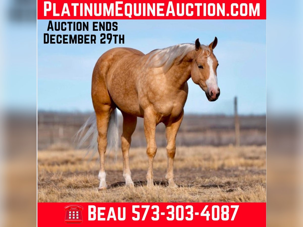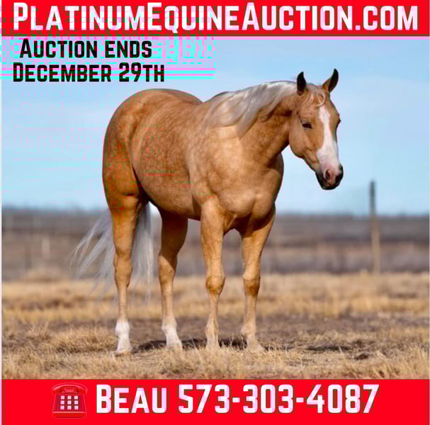 ONLINE AUCTION Place your bids at www.PlatinumEquineAuction.com Starting Bid $3500 Auction ends December 29th, 2024 Need a new saddle? Check out White Rock Saddles on our website or Facebook! A Whiskey Bootlegger is a 2020 model AQHA palomino gelding that stands 15 hands tall with an impeccable pedigree and versatile training to back it up. Sired by the great Whizkey N Diamonds, a proven producer in the reining industry, this gelding carries the genetic potential to excel in multiple disciplines. With his striking golden coat and strong, correct conformation, he is not only an eye-catcher but also built to perform. At just four years old, he is at a prime age to develop further in your chosen direction. With 16 months of professional reining training, this gelding is well-versed in the fundamentals of high-level performance. He is soft in the bridle, responsive to leg cues, and exhibits excellent stop, spin, and rollback mechanics. While he could easily be put back into the reining show pen, his foundation also makes him a natural candidate for ranch versatility or ranch riding events. His balanced gaits, surefootedness, and calm demeanor make him a pleasure to ride, whether in the arena or on the trail. Beyond his performance capabilities, this gelding is a true family horse. Gentle and kind-hearted, he has been ridden by riders of all ages and experience levels, making him a safe and enjoyable partner. He has been trail ridden extensively across the country, showcasing his reliability in diverse environments and his willingness to tackle new challenges. Whether you’re crossing streams, navigating wooded trails, or riding through open pastures, this gelding is steady, trustworthy, and eager to please. In addition to his versatility under saddle, this gelding is simply a joy to be around. He has a calm and personable demeanor that makes him a barn favorite. Easy to handle, load, and haul, he adapts well to new situations and settles quickly in unfamiliar surroundings. Whether you’re looking for a competition partner, a dependable ranch horse, or a family-friendly trail mount, this gelding is a well-rounded option with the training, temperament, and pedigree to excel. For more info please call or text Broken S Equine Beau 573-303-4087. ONLINE AUCTION Place your bids at www.PlatinumEquineAuction.com Starting Bid $3500 Auction ends December 29th, 2024 Need a new saddle? Check out White Rock Saddles on our website or Facebook!