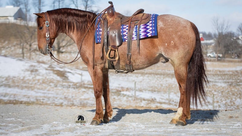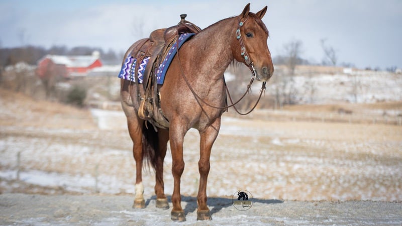 ❤️🔥𝑩𝒆 𝑴𝒊𝒏𝒆 𝐒𝐄𝐋𝐄𝐂𝐓❤️🔥 Happening now thru MONDAY | FEBRUARY 9th - Available EXCLUSIVELY on HorseBid's website! For more details and to register visit: www.Horsebid.com CONSIGNOR CONTACT: North Wind Farm 330-473-3521 LOCATION: Fredericksburg, OH BREED: AQHA REGISTERED: Yes REGISTERED NAME: Huskers Ticket COLOR: Red Roan HEIGHT: 15 AGE: 6 GENDER: Gelding Introducing Huskers Ticket AKA “Flint” is a 6 yr old registered AQHA gelding, standing at 15hh! Flint is well trained to ride! He is a gentleman on the ground and has really good manners! He loves turnout and is easy to catch in the field! He stands nicely for tacking up, grooming, and for bathes! He picks up his feet as well! Flint is an easy keeper and requires no maintenance! Flint is very fun to ride! He has a very smooth walk, trot, lope and a nice stop! He has easy cues and is responsive! He will ride western and bareback! He will also ride bridles! He will neck rein and direct rein! He has a slow pivot and a side pass! Flint rides great on the trails! He will cross creeks, step over logs, and is sure footed. He will cross all the obstacles and doesn’t mind the tarp or the ball! He is not easily spooked and is the same horse every day you ride him. He is used to being around dogs and atvs! We have rode him on the state route and he is traffic safe! He is a seasoned trail horse and very fun to ride in the arena, he is talented and safe! He is suitable for all levels of riders. Flint would be a great ranch riding prospect. He is fun, safe, and reliable! Contact us for more info on this gorgeous gelding!