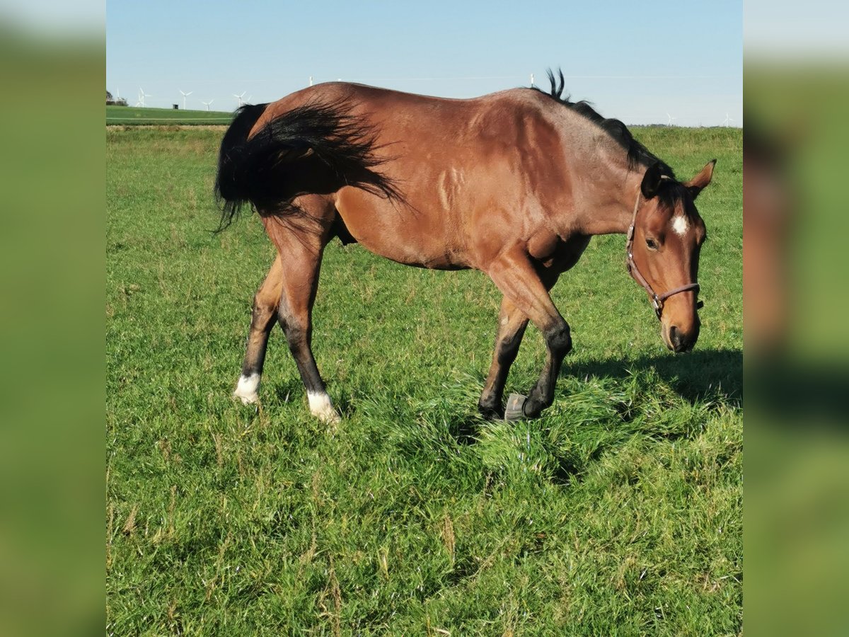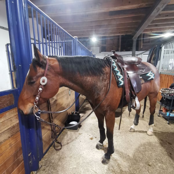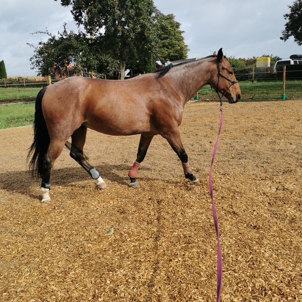 Jac ist ein knapp 6 Jahre alter Hancock gezogener Quarter Horse Wallach in der Farbe Bay Roan. Mit 4 Jahren bekam er eine solide Grundausbildung in allen Gangarten und wurde dann weiter trainiert in Richtig Ranch Disziplinen. Das drehen beherrscht er auch schon gut. Da ich im einfach zeitlich nicht gerecht werde, wartet er nun darauf, weiter gefördert zu werden, Jac geht ohne Probleme alleine ins Gelände, wo er auch mal erschrickt, wenn was unheimliches kommt😅. Er hat im allgemeinen kein Problem mit dem alleine sein. Jac war schon bei einigen Trainern mit mir und hat seine Sache immer toll gemacht. Er fährt auch ohne Probleme alleine Anhänger, er braucht nur wieder etwas mehr Übung beim verladen, da ich einfach zu wenig Zeit hatte zum wegfahren in letzter Zeit. Er ist voll beschlagen und absolut schmiedefrom. Jac ist kerngesund und hat regelmäßig alle Impfungen bekommen, so wie die jährliche Zahnkontrolle. Er hat vorne links eine angeborene Fehlstellung und steht hier leicht zeheneng. Der Fuss ist kerngesund und Röntgenbilder die zu 100% sauber sind liegen vor. Er ist kein Notverkauf und wird nur wegen absolutem Zeitmangel abgegeben. Ich wünsche mir einen Menschen für ihn, der ihn als Freund und nicht als Sportgerät benutzt. Er ist kein Kinder- oder Anfängerpferd. Er wird auf keinen Fall an einen Schulbetrieb oder Händler abgegeben. Auf Wunsch kann sein passender Sattel, ein Steffen Breug Reiner, mit gekauft werden. Wenn du dich angesprochen fühlst und denkst, Jac könnte dein Freizeitpartner werden dann melde dich gerne. Probereiten akzeptiere ich nur bei ernsthaftem Interesse und wird mit 50€ berechnet um Reittourismus zu vermeiden. Dies wird beim Kauf natürlich verrechnet.