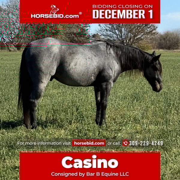 ⚜️ 𝓽𝓱𝓮 𝐇𝐨𝐫𝐬𝐞𝐦𝐚𝐧'𝐬 𝓢𝓱𝓸𝔀𝓬𝓪𝓼𝓮⚜️ Happening now thru MONDAY | DECEMBER 1st - Available EXCLUSIVELY on HorseBid's website! For more details and to register visit: www.Horsebid.com CONSIGNOR CONTACT: Bar B Equine LLC 309-229-4249 LOCATION: Princeville, IL BREED: AQHA REGISTERED: Yes REGISTERED NAME: Mark Pepper Hancock COLOR: Blue Roan HEIGHT: 15.1 AGE: 6 GENDER: Gelding
