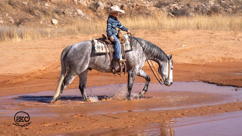 MR TIME 'Rio' 6 jaar oude grijze AQHA-ruin van 15.1 hh