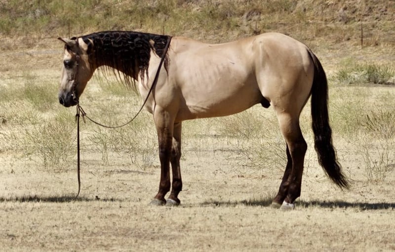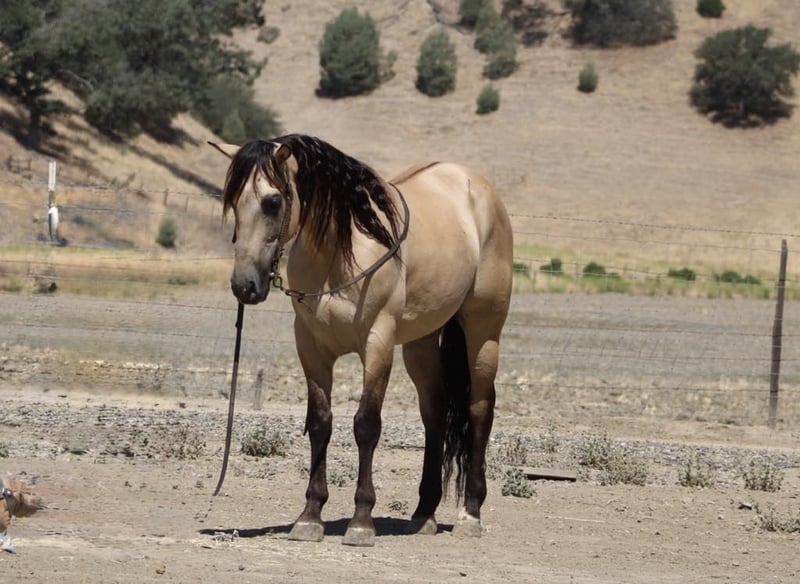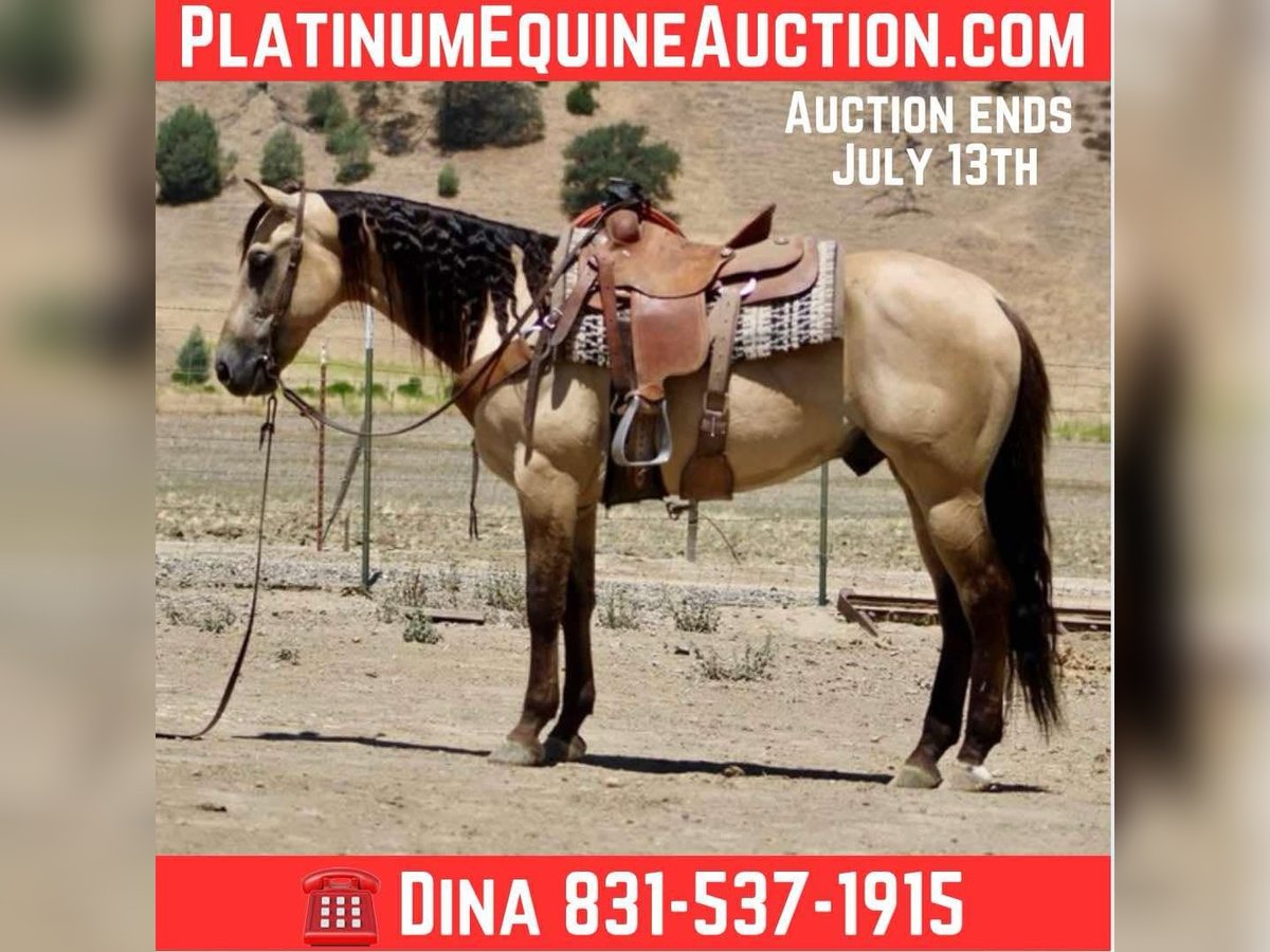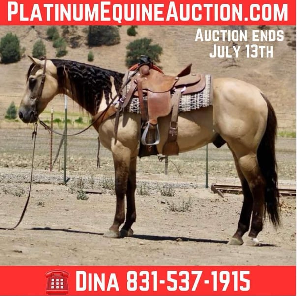 NLINE AUCTION Place your bids at www.PlatinumEquineAuction.com Starting Bid $3500 Auction ends July 13th 2025 Need a new saddle? Check out White Rock Saddles on our website or Facebook! Meet Avalon—a stunning, mystical dunskin gelding. He’s 5 years old, stands at 15.3 hands tall, and is sure to catch your eye with his fluid movement and long, beautiful black mane and tail. Avalon is an elegant, collected mover who lopes smoothly and performs correct circles with ease. He has a nice stop and a soft, easy backup. With his striking appearance and talent, Avalon has the look and ability to excel in both English and Western disciplines. Avalon is a horse that is a free mover. We’ve used him to work cattle, which he genuinely enjoys, and we’ve roped on him in both the branding pen and out in the pasture. On the trail, Avalon is confident and reliable—he moves easily through thick brush, deep water, and over logs. He’s encountered a wide range of wildlife, including deer, pigs, and elk, and remains calm and unfazed. Avalon also handles obstacle courses with ease—tarp, tires, pool noodles—nothing spooks him. He’s a kind and willing horse with a steady temperament, perfect for riders of all levels. He’s also fully traffic-safe: cars, trucks, semis, flags, bouncy balls—you name it, he’s seen it and handled it without issue. Avalon rides out alone or in a group and has impeccable ground manners. He ties, clips, saddles, and bridles easily. Whether in a stall or out on pasture, he settles in comfortably. He loves bath time and grooming and is as user-friendly and lovable as they come. If you’re looking for a dependable, beautiful, and versatile horse, Avalon is your dream come true. Located in Paicines, CA Contact Dina at Longhorn Ranch: 831-537-1915. ONLINE AUCTION Place your bids at www.PlatinumEquineAuction.com Starting Bid $3500 Auction ends July 13th 2025 Need a new saddle? Check out White Rock Saddles on our website or Facebook!