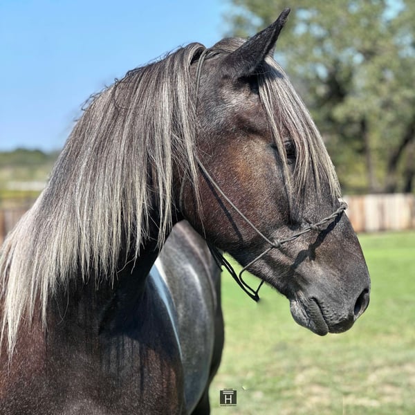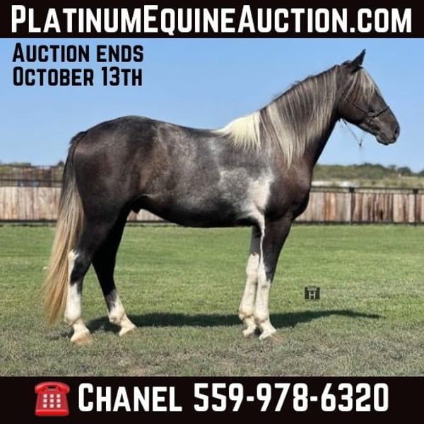 ONLINE AUCTION Place your bids at www.PlatinumEquineAuction.com Starting Bid $3500 Auction ends October 13th, 2024 Need a new saddle? Check out White Rock Saddles on our website or Facebook! Tin Man is a 4 year old Draft Cross Gelding standing 16 hands tall. He is extremely kind and gentle and full of personality. He is broke right and is soft to both hand and leg cues. We have ridden Tin Man out at the ranch, down the freeway, over the obstacles, and in the arena. He is sure footed, goes absolutely anywhere you ask him to, and is a fun and confident ride. We have started Tin Man roping slow cattle and pulling the log. He is gentle and has never offered to buck. He is very good to be around, saddle, bathe, pick feet, etc. We think Tin Man would make someone an awesome trail mount but he also has the athletic ability to be even fancier if someone wanted to go the performance horse world with him in either English or Western discipline. He is forward moving and perky eared and happy to go do something. Tin Man is sound and clean legged. FMI feel free to call/text Holland Horse Co. Chanel 559-978-6320. Located in Jacksboro, TX. We can help arrange shipping nationwide! ONLINE AUCTION Place your bids at www.PlatinumEquineAuction.com Starting Bid $3500 Auction ends October 13th, 2024 Need a new saddle? Check out White Rock Saddles on our website or Facebook!