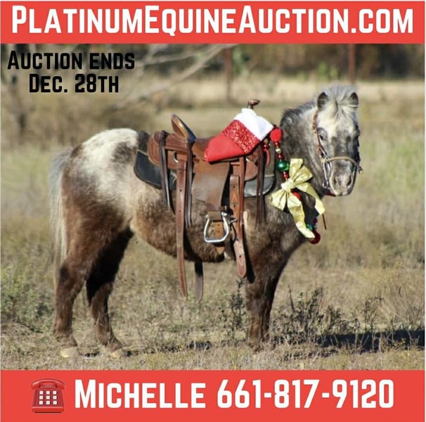 ONLINE AUCTION Place your bids at www.PlatinumEquineAuction.com Starting Bid $3500 Auction ends December 28th, 2025 Need a new saddle? Check out White Rock Saddles on our website or Facebook Still searching for that perfect Christmas present the kids will LOVE? Look no further — we’ve got the one they’ll remember forever! Meet Chicken Nugget! This adorable 5-year-old Appaloosa gelding pony stands 9.3 hands tall and is absolutely as cute and fluffy as they come. He’s built like a little tank — wide, sturdy, and full of personality. Chicken Nugget is truly the total package for any child needing a safe, confidence-building partner. He’s perfect for complete beginners, especially the littles just starting out on a lead line. He’s done lead-line trail courses, been down many trails, and handles new places with ease. And for the kids ready to level up? Don’t worry — he rides off independently just as well, making him a fantastic next step pony too. Whether it’s hitting the playday events, exploring the pasture, or learning the basics at home, Chicken Nugget always shows up gentle, willing, and steady. He’s a sweetheart who meets you at the gate, loves attention, and is just as fun on the ground as he is under saddle. If you want a pony that will keep the kids smiling long after Christmas morning… Chicken Nugget is your guy! Ask about his BUY IT NOW price to get him just in time for Christmas and special rush delivery!!! We are open to anyone interested in him to schedule a time to come see him or if you can’t make it schedule a FaceTime showing to see him. If you need help with transport don’t hesitate to ask we have a list of reputable haulers that can get him safely to your doorstep WORLD WIDE including, Alaska , Mexico, Hawaii, Canada and anywhere in between from Stephenville, TX. For more info contact Michelle with M $ Performance Horses 661-817-9120 ONLINE AUCTION Place your bids at www.PlatinumEquineAuction.com Starting Bid $3500 Auction ends December 28th, 2025 Need a new saddle? Check out White Rock Saddles on our website or Facebook