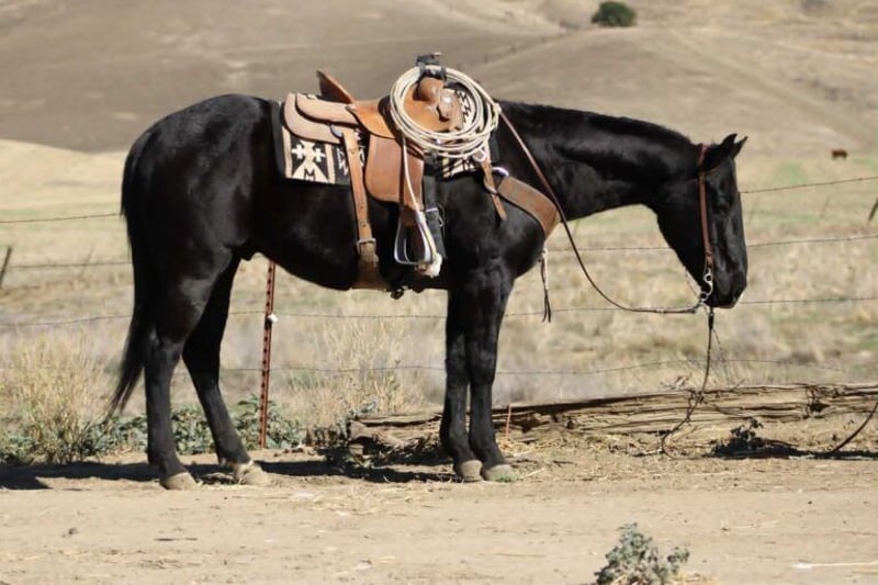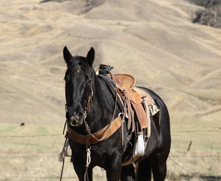 Coaltrain – The Kind That’s Coming Along Just Right Coaltrain is a 6-year-old black gelding standing 14.3 hands — built right, gentle-minded, and easy to get along with. He’s the kind you can saddle up and enjoy without a bunch of drama, but still young enough to keep shaping into anything you want him to be. He’s spent most of his time being used around the ranch to gather cattle and check pastures, and he’s taken to every job with a calm, willing attitude. He’s surefooted and confident outside — crosses water, handles brush, and makes his way through rough country without a fuss. Coaltrain’s been around dogs, tractors, traffic, and all the usual ranch commotion, and he takes it all in stride. He’s also been getting some time in the arena and learning new things every week. He’s got good basics — moves off your leg, follows his face, and stays soft in the bridle. He’s the kind that learns quick, tries hard, and doesn’t get worked up when you show him something new. We’ve been introducing him to obstacles and flags, and he’s handled everything like a gentleman. He’s got a solid foundation, a great attitude, and plenty of talent to go in any direction you’d like. Whether you want to keep him as a reliable trail horse, keep building him into a ranch versatility or sorting mount, or just enjoy him for what he already is — he’s a good one to have around. He’s easy to haul, bathe, and tie, and he’s always quiet to handle. Coaltrain’s the kind that fits a lot of riders — safe, steady, and uncomplicated, yet still with enough feel and try to keep things fun. 📞 Contact Hailey:+13039908552 🚚 Nationwide shipping available