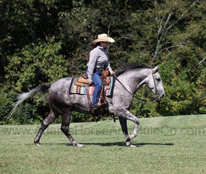 Go to visit our website for more pics and a video. AHAMC has been in the horse business and sold horses over the internet since 2005. We have a long track record of success with hundreds of happy customers. We work hard to match riders with the correct horses and specialize in beginner safe, family friendly horses that have been used and checked out by our family! We can set up transportation anywhere in the US and look forward to working with you.et your clipboard out and sharpen your pencil, ALL of those boxes are gonna get checked when you see Peppy Cat Dulce aka Mercedes… standing 15H tall and just about as wide, Mercedes is a 2019 model Reg AQHA, gelding with dapples from head to toe! Not only does he check that box in the looks department, take a look at his pedigree as he is a grandson of High Brow Cat with his dam going back to Colonel Freckles. Mercedes is bred to ride and bred to be a cow horse! He has had reining training and has worked the flag. He has been used out on the ranch for pasture roping and doctoring. Mercedes has team sorted and has been roped on out of the box. He lopes slow and easy in nice circles, spins both ways, slide stops… he has the moves to go along with the good looks! If the ranch work is done and you just want to go for a relaxing trail ride… steep slopes, rocky terrain, creeks, logs, ditches… he crosses it all with ease and is never in a hurry! If you have a free Saturday and want to go show him, he will excel in the Ranch Classes as well! Mercedes is the horse that can do any job, ride anywhere, the whole family can ride him and the whole family will love! Looks, Pedigree, Training, Experience, Versatility, Safe… he truly checks ALL the boxes!!! Call 606-308-2461 for more info. Go to visit our website for more pics and a video. AHAMC has been in the horse business and sold horses over the internet since 2005. We have a long track record of success with hundreds of happy customers. We work hard to match riders with the correct horses and specialize in beginner safe, family friendly horses that have been used and checked out by our family! We can set up transportation anywhere in the US and look forward to working with you.