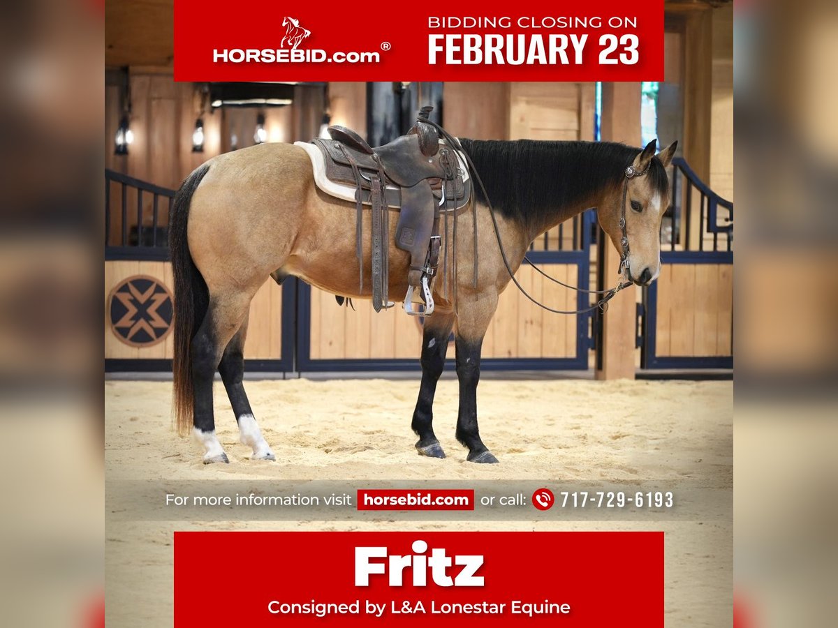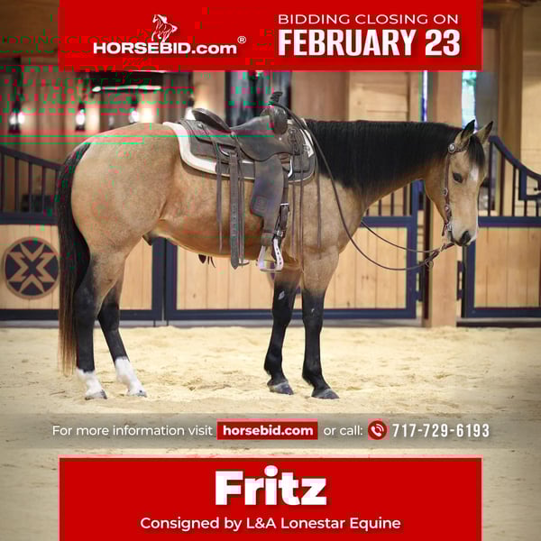 💎 𝐓𝐇𝐄 𝓓𝓲𝓪𝓶𝓸𝓷𝓭 𝐒𝐇𝐎𝐖𝐂𝐀𝐒𝐄 💎 Happening now thru MONDAY | FEBRUARY 23rd - Available EXCLUSIVELY on HorseBid's website! For more details and to register visit: www.Horsebid.com CONSIGNOR CONTACT: L&A Lonestar Equine 717-729-6193 LOCATION: Needmore, PA BREED: AQHA REGISTERED: Yes REGISTERED NAME: WQH Jess Cal Olena COLOR: Buckskin HEIGHT: 15.1 AGE: 7 GENDER: Gelding Fritz (registered as WQH Jess Cal Olena) is a sharp 7-year-old buckskin gelding standing 15.1 hands tall with the build, mind, and versatility to go in any direction. With cow-bred bloodlines, he naturally shows the athleticism and instinct you want in a performance prospect. Fritz is great on the trail as well as in the arena — confident, calm, and level-headed whether he’s alone or with other horses, handling new environments with ease. He rides around soft and handy with a great handle — soft in the face, moves easily off your leg, sidepasses, and has a nice stop. He’s comfortable and confident in the arena and has the ability to continue advancing in a performance program. Fritz has also been used around the ranch and is handy to have around cattle. He’ll open and close gates with ease and goes about his work quietly and willingly. With his cow breeding, athletic ability, and willing attitude, Fritz would make an excellent rope, breakaway, or barrel prospect, or continue on as a dependable ranch and all-around gelding. He is sound, an easy keeper, and ready for someone to take him to the next level.