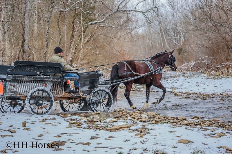 ONLINE AUCTION Place your bids at www.PlatinumEquineAuction.com Starting Bid $3500 Auction ends March 9th, 2025 Need a new saddle? Check out White Rock Saddles on our website or Facebook! This is “UNCLE HERSHEL”, a handy broke, professionally trained, smart, and gentle BLACK PERCHERON CROSSBRED GELDING that is broke to ride and drive. This gelding stands 15.1 hands tall and is 6 years old. He has been used for ranch work, driving, and been hooked to farm machinery. He has good bone and feet with an attractive refined head. He rides around nicely and has a collected canter, a big stop, and he just floats across the ground. He is sure footed, smooth, and a pleasure to ride or drive. He has been through the cross country driving courses, on the main roads, and in the woods. He will cross deep water under harness or tack. He is traffic safe, not spooky, and easy to harness and hitch. He is cool horse that will ride around and get where you want him to be. He has lots of feel in the bridle and seat. He is attractive, very bright, has a head full of sense, and he is personable. This gelding is one you don’t want to miss out on. If you’d like more info or want to make a Buy It Now Offer contact HH Horses Erin 304-238-4155 Located in Flemingsburg, KY. ONLINE AUCTION Place your bids at www.PlatinumEquineAuction.com Starting Bid $3500 Auction ends March 9th, 2025 Need a new saddle? Check out White Rock Saddles on our website or Facebook!