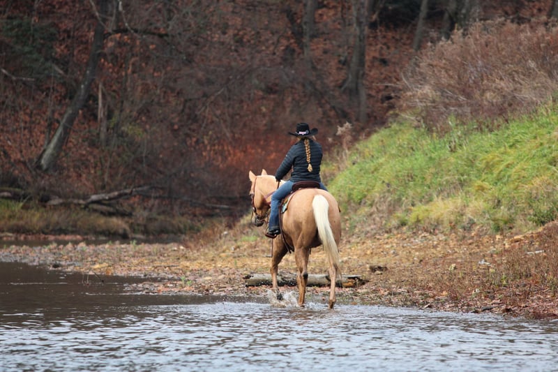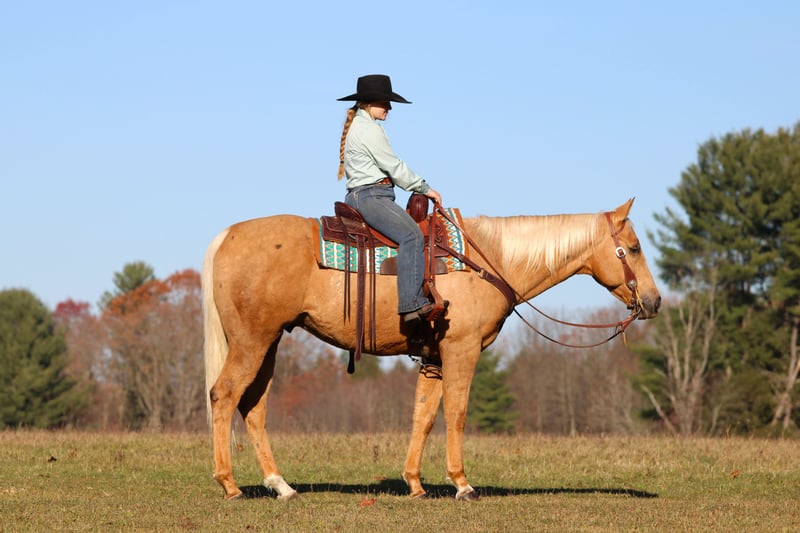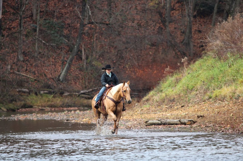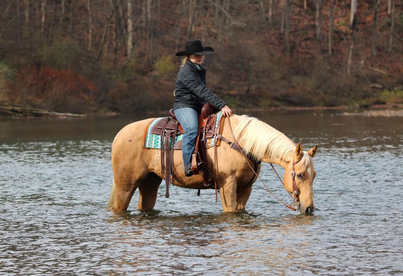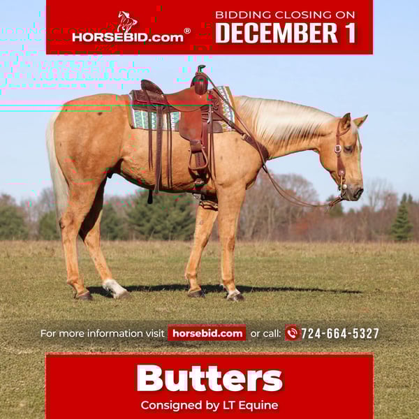 ⚜️ 𝓽𝓱𝓮 𝐇𝐨𝐫𝐬𝐞𝐦𝐚𝐧'𝐬 𝓢𝓱𝓸𝔀𝓬𝓪𝓼𝓮⚜️ Happening now thru MONDAY | DECEMBER 1st - Available EXCLUSIVELY on HorseBid's website! For more details and to register visit: www.Horsebid.com CONSIGNOR CONTACT: LT Equine 724-664-5327 LOCATION: Miola, PA BREED: AQHA REGISTERED: Yes REGISTERED NAME: Cashes Colors COLOR: Palomino HEIGHT: 15.2 AGE: 7 GENDER: Gelding Butters is an absolutely gorgeous palomino gelding with the coolest dark “Bend-Or Spots” on his body that make his color very unique! He stands approximately 15.2 1/2 hands tall with a nice build, good solid legs, and feet. Butters is one of those horses that always wants to be friends with everyone. He doesn’t have a mean bone in his body. He will stand there with you all day and soak up all the attention he can get. He’s had kids mess around with him for hours and he stands perfectly still and does whatever they ask of him. He has phenomenal ground manners, I don’t know about you but that’s very important to me. He’s stands tied quietly, whether in cross ties, on the trailer, to the arena gate. Or just standing in the arena ground tied as you walk around and set up jumps or ground poles! He loads and unloads on the trailer nicely. He stands there patiently without pawing or swaying. He has great stall manners and is easy to catch out in the pasture field. He is a passive horse so he tends to be lower on the pecking order in the field. As for riding Butters is a great ride that any level rider will enjoy! He has never offered to buck, bolt, or rear. He stands great to be mounted from the ground or the mounting block. He has a nice one hand neck rein and will move off leg pressure ques. He sets his head and will trot/jog smoothly. His lope is so smooth that you could quite literally sit it all day! He picks up both leads with ease. And is well seasoned on small circles he keeps a smooth collection with contact or a loose rein! In my opinion Butter would make a FANTASTIC English horse. I have started him over small cross rails and he just has a natural ability that someone could really fine tune. That being said I’m not the best English rider, but I try, and he is so forgiving! He don’t mind if I loose balance or accidentally bump him he keeps his composure and just waits for me to correct myself. With that type of disposition I think he would make a wonderful lesson horse. He has seen more arena riding than trail riding but that doesn’t bother him any he’ll go right out in the woods and across the creeks and through the mud! He’s not a spooky horse he may look at things but no crazy spook! I have had all levels of rider on him and get along with him great. Butter has a Health Check from the vet and current coggins. He is ready to saddle up and go! We can help coordinate shipping, and if you can’t make it to see him in person I’m more than happy to do a FaceTime video with you! For any more information please give me a call or text 724-664-5327.