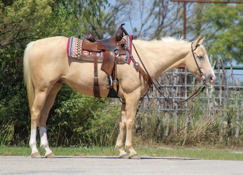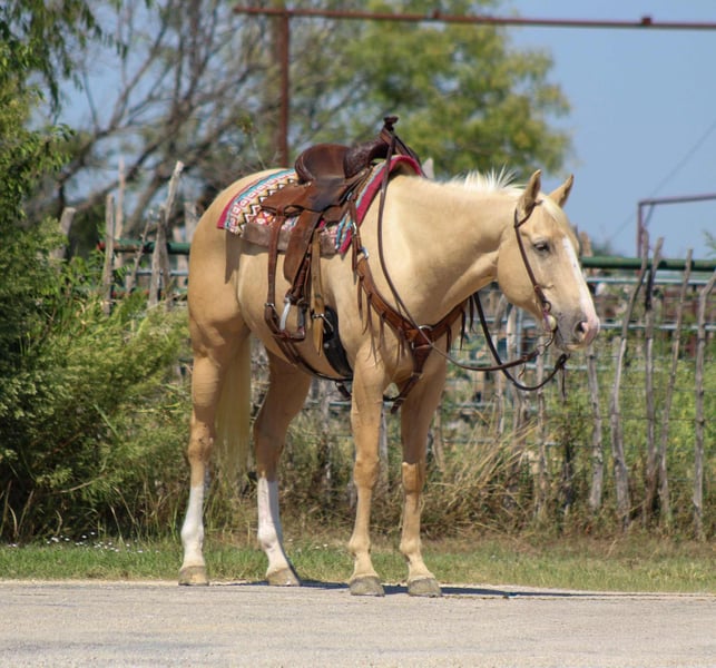 ONLINE AUCTION Place your bids at www.PlatinumEquineAuction.com Starting Bid $3500 Auction ends October 19th, 2025 Need a new saddle? Check out White Rock Saddles on our website or Facebook If tall, blonde, and handsome is your type—meet "A Guys New Image" also known as French Fry. This golden boy is the kind that’s hard to find and even harder to forget. With his stunning color, soft kind eye, and quiet, in-your-pocket personality, French Fry checks every single box for anyone looking for a true all-around gelding with a heart of gold. ✅2019 AQHA Registered gelding Guys New Image, with the legendary Frenchman’s Guy on his papers ✅Stands 16 hands with a strong, athletic build and flawless conformation ✅Lopes around soft and collected with a fancy handle and a smooth way of going ✅ Trail and ranch proven – crosses water, bridges, logs, and traffic with zero hesitation ✅ Used weekly for penning cattle, sorting, and loading trucks ✅ Been to the Fort Worth Stockyards – handled all the hustle and bustle like a pro ✅ Beginner friendly – safe, quiet, and honest ✅ Loves people – meets you at the gate, loves attention, and always aims to please French Fry is that rare combination of flash, foundation, and friendliness. He’s broke, kind, and classy—whether you’re looking for a trail buddy, a family-safe horse, or something with enough handle for ranch work or performance, this gelding can do it all. He’s got the look, the mind, the breeding, and the ride—and he’s ready to make someone very happy. We are open to anyone interested in him to schedule a time to come see him or if you can’t make it schedule a FaceTime showing to see him. If you need help with transport don’t hesitate to ask we have a list of reputable haulers that can get him safely to your doorstep WORLD WIDE including, Alaska , Mexico, Hawaii, Canada and anywhere in between. Located in Stephenville, TX. Contact Michelle with M $ Performance Horses 661-817-9120 with any questions. ONLINE AUCTION Place your bids at www.PlatinumEquineAuction.com Starting Bid $3500 Auction ends October 19th, 2025 Need a new saddle? Check out White Rock Saddles on our website or Facebook