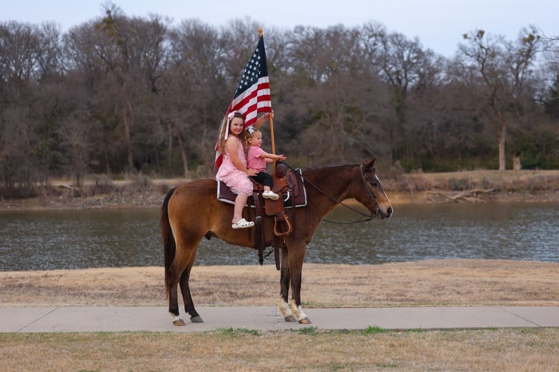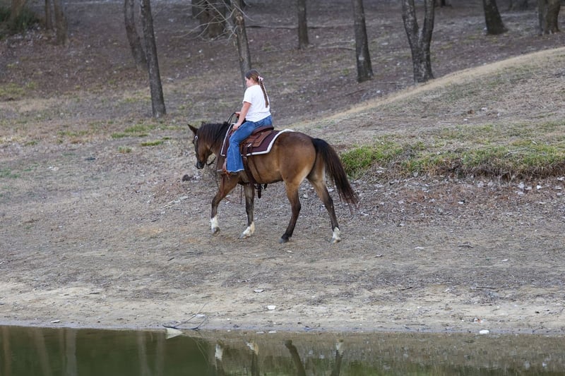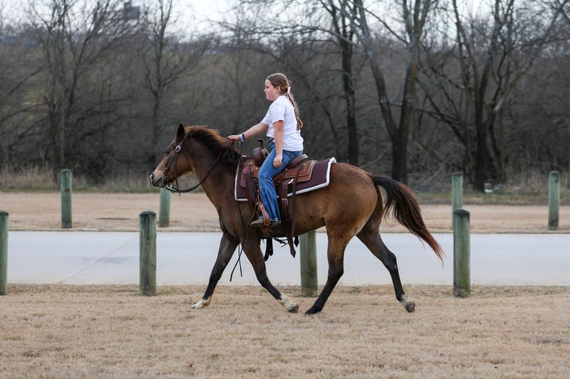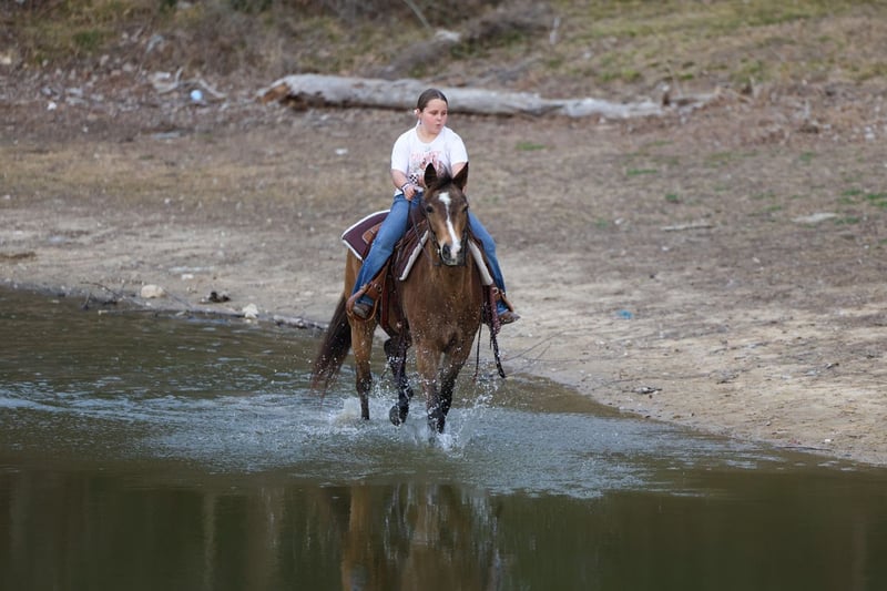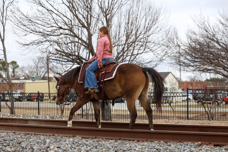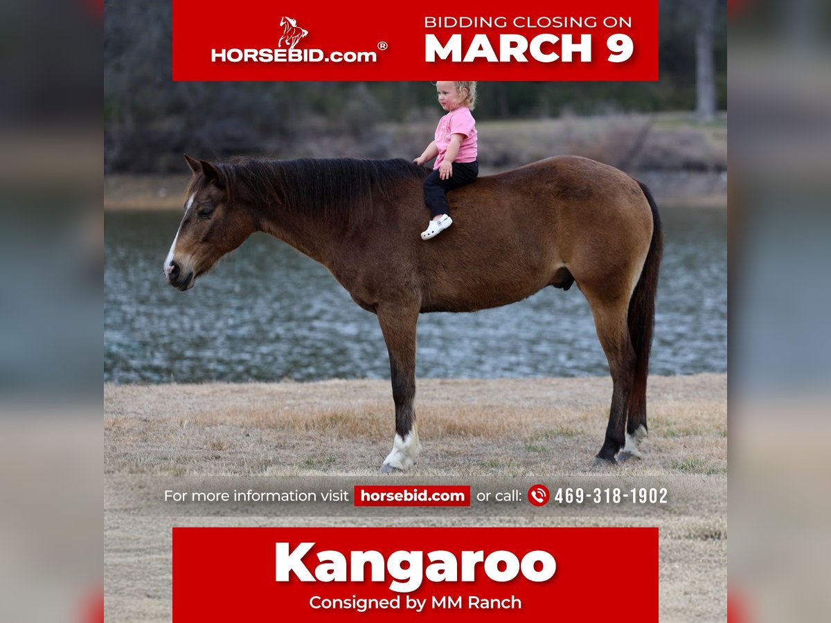 ℳ𝒶𝓇𝒸𝒽 ♦️𝐑𝐈𝐃𝐄𝐑'𝐒 𝐂𝐇𝐎𝐈𝐂𝐄♦️ Happening now thru MONDAY | MARCH 9th - Available EXCLUSIVELY on HorseBid's website! For more details and to register visit: www.Horsebid.com CONSIGNOR CONTACT: MM Ranch 469-318-1902 LOCATION: Forney, TX BREED: Quarter Horse REGISTERED: No REGISTERED NAME: Kangaroo COLOR: Bay HEIGHT: 14 AGE: 8 GENDER: Gelding 🦘Meet Kangaroo!! 🦘 🦘Where do I even start with a great BABYSITTING UNICORN gelding like this one! Kangaroo is the perfect little fun size horse standing 14 hands tall. The perfect family fun size. He has been part of our family for along time now and has babysat so many kids and taught them ride. Kangaroo is just a 8 year old buckskin gelding. Yes just 8 years old. (Vet and horse dentist confirmed). He has manners and rides around like an old seasoned show horse, he’s as broke as broke gets and I would trust him with any kid, small adult, grandma or grandpa, any age, beginner. Doesn’t matter. You can ride him. I trust anyone can ride him anywhere, including BRIDLE-LESS! Absolutely NO kick or buck in him! Absolutely no bad habits! Absolutely no maintenance. He is simple, easy, and fun to ride. When I say he’s been there and done that I mean it. He is one handed broke, neck reins, and has a good stop! And the absolute best tiny rocking chair short lope and a silky smooth trot. A kid could really learn and build confidence loping him around. He has always been willing to go or do anything we have asked. He will ease through the creeks/ponds, thickets, traffic safe, train safe, machinery safe, loud noises don’t bother him. He’s been to ropings, barrel races, jumping jumps, rodeos, swimming ponds, tied out camping, and been thru every aspect of the woods from thickets to boggy creeks, and trail riding down the roads. Trains honking and going by don’t bother him, he will ride right next to it! 🦘I feel he really shines no matter what you do with him. Like being rode English. He has been shown and won many ribbons in small local shows jumping small courses. Both in a show ring and out cross country. He is such a pretty mover. Or ride him western and take him to playdays. He knows all the playday events. Doesn’t matter to him. He aims to please. Kangaroo has also been used to carry the American flag for the National Anthem at rodeos. 🦘He is BOMBPROOF, absolutely no spook at all and will go anywhere he is pointed, he never refuses or says no. Always has a happy go lucky attitude. Never in a bad mood. He is a once in a lifetime time little horse. He is one of those that is as honest as the day is long. He’s easy to catch, bathe, and hauls like a champ. He has the biggest heart and try of anything we have on the place. The kids themselves can saddle, bridle, and ride him everywhere with ZERO help from an adult. I trust this little horse enough for little kids to run up to him from the front or back and he will stand like a rock. You can swing a rope on him, pop bull whips, run barrels, run poles, goats tie, TRICK RIDE, and trail ride! Kangaroo will walk, trot, lope, or go as fast as you want in all the events! He is the coolest little guy around and everywhere we go he gets ALL the attention. I really can’t say enough good things about him. And he is just 8 yrs old. He has his whole life ahead of him. 🦘Please don’t hesitate to call us about Kangaroo, I’d love to talk to you about him. He sells 100% safe and sound in every way. We can help with making shipping arrangements to anywhere!! He did have a pre evaluation done by our vet. He got a clean bill of health. He is ready to go to his new home.