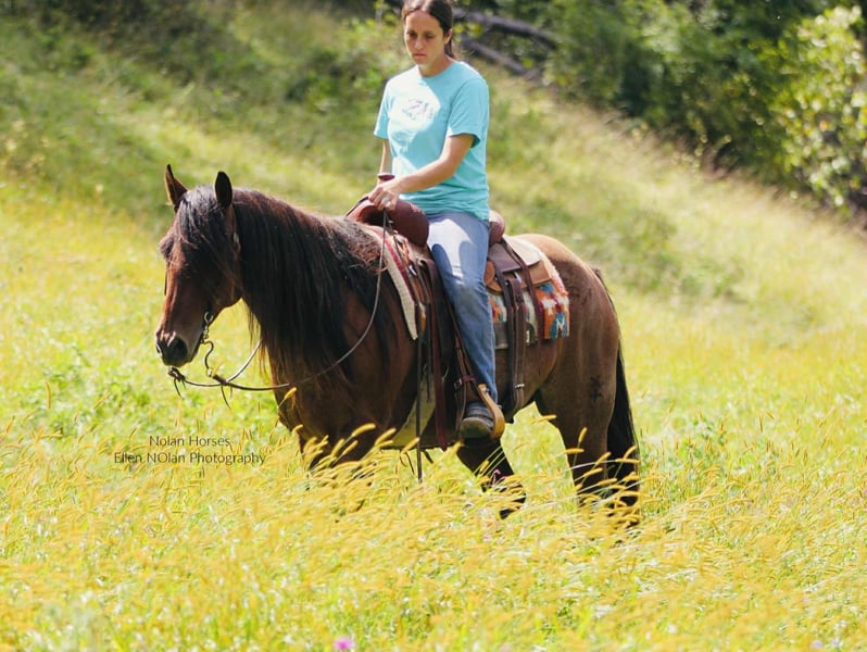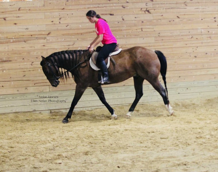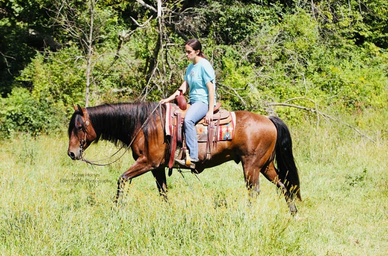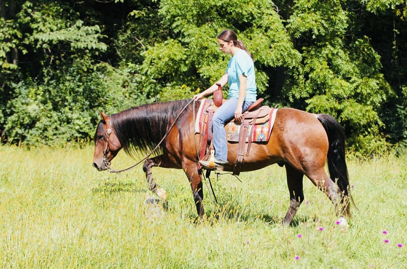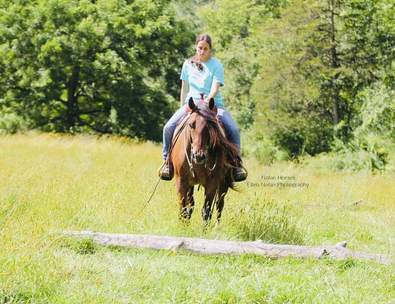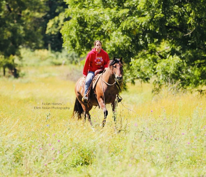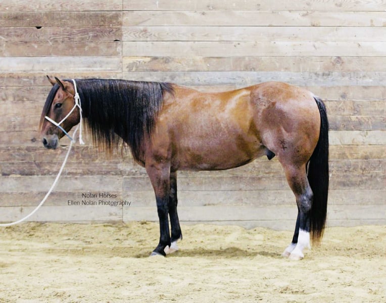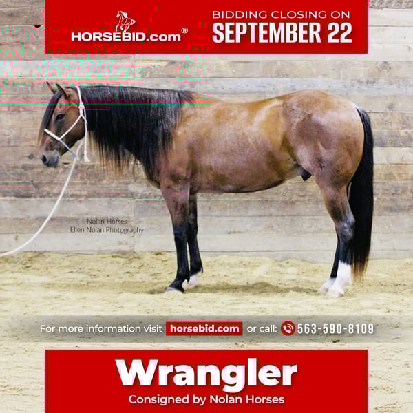 🍁𝒕𝒉𝒆 𝐅𝐀𝐋𝐋 𝑺𝒑𝒆𝒄𝒕𝒂𝒄𝒖𝒍𝒂𝒓🍁 Happening now thru MONDAY | SEPTEMBER 22nd - Available EXCLUSIVELY on HorseBid's website! For more details and to register visit: www.Horsebid.com CONSIGNOR CONTACT: Nolan Horses 563-590-8109 LOCATION: Peosta, IA BREED: AQHA REGISTERED: Yes REGISTERED NAME: Jacks Happy Brother COLOR: Red Roan HEIGHT: 14.2 AGE: 7 GENDER: Gelding Jacks Happy Brother Meet Wrangler – a stunning 7-year-old red roan gelding who turns heads wherever he goes! Standing 14.2 hands and weighing in at over 1100 lbs, he’s thick-made, compact, solid and dependable as they come with a gorgeous mane and tail. Wrangler is one of those geldings you will search a life time to find- he is the perfect size for any aged rider to have some fun on! Wrangler has a good pedigree, a great mind and all the ability you could ask for, plus he’s extremely quiet and gentle! We honestly cannot say enough good things about Wrangler! He is easy to ride, in the arena he stands to be mounted, walks off nicely every time, has a nice jog, lopes circles, rides on a loose rein and neck reins, has a nice stop, knows leg cues, side passes and backs up. He has smooth transitions, is soft in the face, and takes both leads with ease. Rides english and moves beautifully under saddle– a real head-turner in any tack! Wrangler has seen lots of outside miles as well, he crosses water, goes up and down the hills, over the logs and through the mud. He’s steady and confident on the trail, crosses obstacles, and handles new situations with a willing attitude. He has been started on the heel side as well-he has roped cattle and the sled out of the box and is coming along great. Wrangler has lots of run and is good in the box. He has also been used to gather and sort cattle in the pasture. He loves attention, is easy to catch, stands tied all day, stands to be brushed, saddled, and bridled. Wrangler is super sweet, stands good for the farrier and veterinarian, loads good, hauls well, is good in a stall or pasture, he is good with both mares and geldings. Wrangler is a great solid, sound, all-around good gelding! Don’t miss out! 100% sound. Wrangler is located in Iowa- we can help arrange shipping nationwide. 📲Call or text Katie with any questions 563-590-8109.