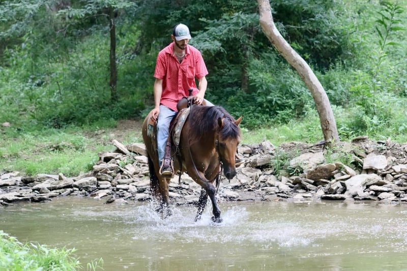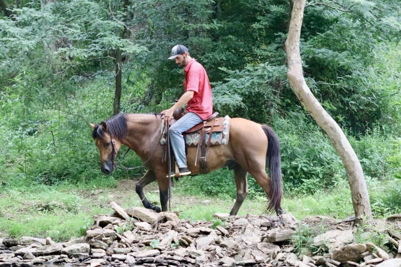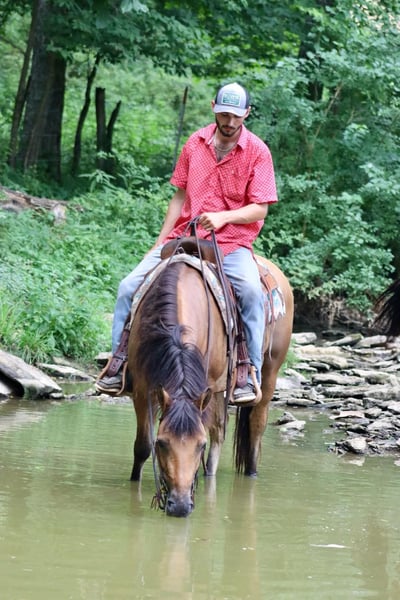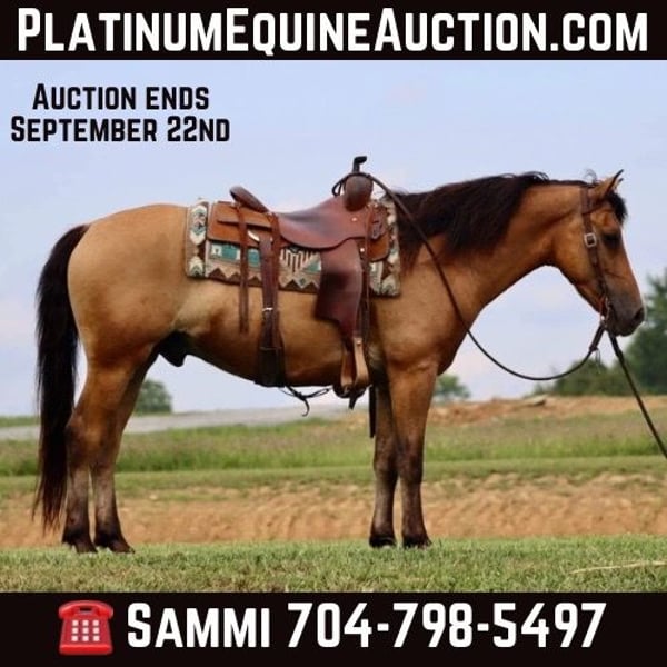 ONLINE AUCTION Place your bids at www.PlatinumEquineAuction.com Starting Bid $3500 Auction ends September 22nd, 2024 Need a new saddle? Check out White Rock Saddles on our website or Facebook! Jasper is a 6 year old, 15 hand gelding. He has a cute expression and attractive personality. He has a solid, walk, trot, and canter. He rides soft in the bridle and responds to leg pressure well. He is experienced on the trails. There isn’t anywhere I wouldn’t take Jasper trail riding. We have trail ridden him all over Kentucky, Tennessee, and Alabama. Most recently we took him to CO and went trail riding in the Rockies. He took in all the new sights, sounds, and smells with complete grace like he had ridden there his entire life. The rougher and different terrain didn’t phase him at all, and he really enjoyed the quick flowing rivers. He crossed them without a second thought. We have had complete beginners riding him on the trails and he takes care of them the absolute best. He will lead the group, or follow along with the beginners or experienced riders alike. He shows great potential for being an English horse as well. He is a nice mover and very athletic. He is schooling 1st level dressage movements currently and shows potential to go higher. Jasper has nice ground manners, loads well, gets along with the group in turnout, and stands well for the farrier. Jasper is the horse everyone wants to choose when it’s time to go out on a ride, and he is often fought over. Don’t miss out on a great, young gelding! For more information, call Sammi Waugh 704-798-5497 Located in Brooksville, KY. ONLINE AUCTION Place your bids at www.PlatinumEquineAuction.com Starting Bid $3500 Auction ends September 22nd, 2024 Need a new saddle? Check out White Rock Saddles on our website or Facebook!