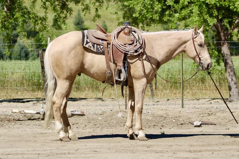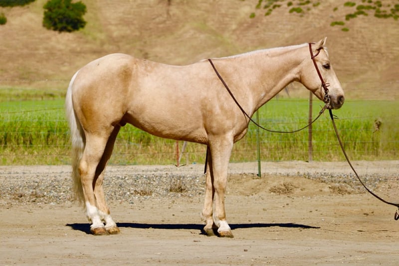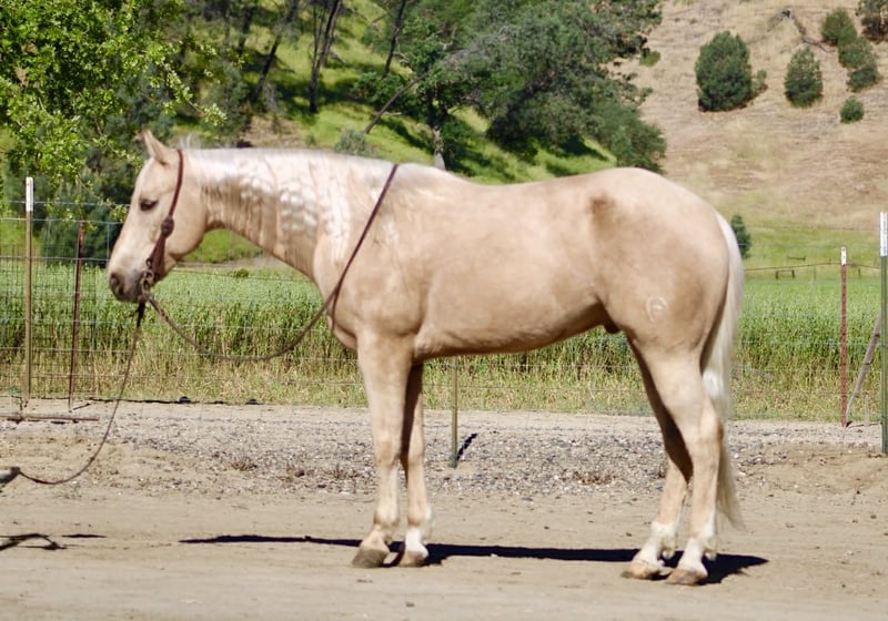 "AVAILABLE ON ONLINE HORSE AUCTION AT www DOT PlatinumEquineAuction DOT com BIDDING OPEN NOW thru SUNDAY | APRIL 26TH! *Final price will be determined on auction site* CONSIGNOR CONTACT INFO: Longhorn Ranch 831-537-1915 LOCATION: Paicines, CA Agent “Golden Outside, Solid All the Way Through.” 8-Year-Old Palomino Gelding • 15 Hands If good horses were easy to find, everyone would have one like Agent… but they’re not—and that’s exactly why he stands out. Agent is a sharp, golden palomino gelding with a kind eye and a willing nature that makes him easy to get along with. He’s the kind that shows up to work with a good attitude. He’s been used to gather cattle and has had some roping in the pasture and lead steer, giving him a practical foundation without being overdone. He’s honest about his job, doesn’t try to outthink you, and seems perfectly content being the one that makes you look good. In the arena, Agent keeps things simple—in a good way. He picks up both leads, has a nice stop, a clean neck rein, and moves through his transitions smooth and correct. No drama, no extra buttons you didn’t ask for… just a horse that does his job and does it right. Outside is where he really proves his worth. Creeks, trees, wildlife, bridges—he handles it all like he’s got better things to worry about. Ride him down the road, haul him to town, take him to the trail course—flags, tarps, balls—he’s seen it and decided none of it is worth getting worked up over. (Unlike some who still flinch at plastic bags.) He’ll stand tied like he’s got nowhere else to be, settles in wherever you put him, and handles new places without making it a production. The kind you can count on to act the same whether he’s at home or somewhere new. Around the barn, he’s easy—catch him, tack him, clip him, bathe him… he’s agreeable about all of it. No negotiations required. Agent is a good-minded, broke gelding with a solid foundation and a disposition that’s hard to beat. The kind that quietly earns his keep and makes every ride a good one. He is safe for all levels of riders. Longhorn Ranch • Paicines, CA Dina • 831:537:1915 Shipping anywhere with a reputable hauler — call to find out more about this fantastic boy. We can video chat or you’re welcome to come meet him in person.