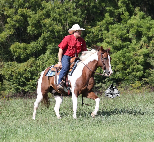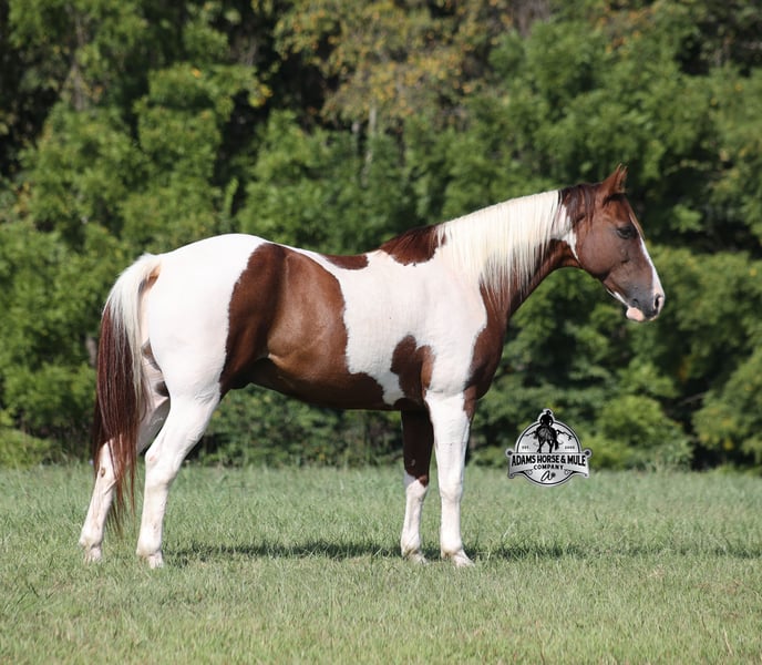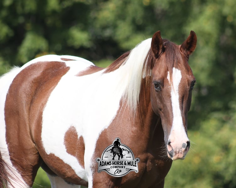 Go to visit our website for more pics and a video www.AdamsHorseAndMuleCo.com AHAMC has been in the horse business and sold horses over the internet since 2005. We have a long track record of success with hundreds of happy customers. We work hard to match riders with the correct horses and specialize in beginner safe, family friendly horses that have been used and checked out by our family! We can set up transportation anywhere in the US and look forward to working with you. Meet Tonto, a super stout built paint gelding that is standing around 15.1hh. He will weigh 1300lbs, he is 8 years old and he has all the good looks, and (the best part) the mindset that anyone could ask for! Not only does he look cool, he has all of the other boxes checked as well… he is Mr. Personality, as friendly as they come, loves attention and is very calm natured. Tonto has been ridden by every member of our family all the way down to our 6 year old daughter and he will be the perfect horse for the whole family to enjoy! He has been ridden around the ranch, checked cows and pushed them around. Tonto is great on trails and he will cross creeks, ditches, logs and navigate rough rocky areas. He has a smooth jog, one of the slowest and softest lopes that you will find, a good stop and reins around as well! He has been exposed to all kinds of wildlife such as deer or turkey or other animals like cows or dogs and will go anywhere that he is asked too. He has been ridden many miles in the mountains of Eastern Kentucky and encountered every obstacle possible on the trail. He will go up or down even the steepest slopes, across deep creeks, over downed trees, and over all types of rough terrain while still being sure footed. Tonto is not cinchy, cold backed, does not crib or weave. He is a super cool horse that anyone is sure to love!!! Feel free to call Eric 606-308-2461 with any questions.