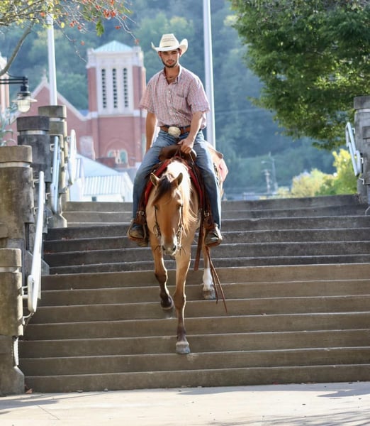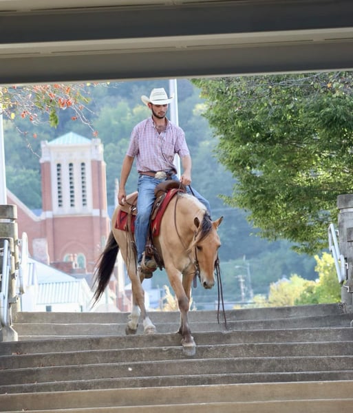 ONLINE AUCTION Place your bids at www.PlatinumEquineAuction.com Starting Bid $3500 Auction ends October 6th, 2024 Need a new saddle? Check out White Rock Saddles on our website or Facebook! Elmer is a unique 15.2 hand Fjord/QH cross gelding. He is 6 years old and as cool as they come! He walks, jogs, and lopes nicely in the arena and outside. He has countless hours of experience on a large cattle ranch in MS. He was the owner’s main mount. He will neck rein, side pass, open and close gaits, and of course do necessary work with the cows from doctoring to loading trucks. You can ride him bridleless, he has a nice handle, and is a joy to have in the barn. He is quiet and gentle and rides the same everyday. He is also excellent on the trails. He crosses natural obstacles with ease including water, bridges, banks, and logs. We have ridden Elmer in town and is traffic safe including motorcycles, scooters, and baby strollers. He loves people walking up and petting him too. He stands well for the farrier and vet. Everywhere we take him, Elmer catches the attention of others for his handsome looks and cool demeanor. Don’t miss out on a great, young gelding like him! Call Sammi Waugh 704-798-5497 Located in Brooksville, KY. ONLINE AUCTION Place your bids at www.PlatinumEquineAuction.com Starting Bid $3500 Auction ends October 6th, 2024 Need a new saddle? Check out White Rock Saddles on our website or Facebook!