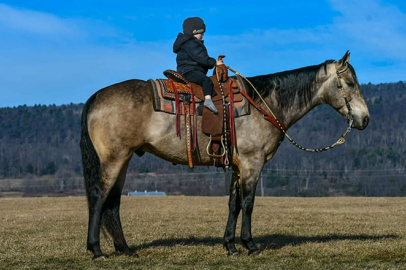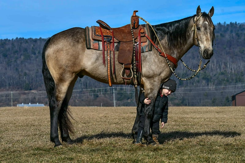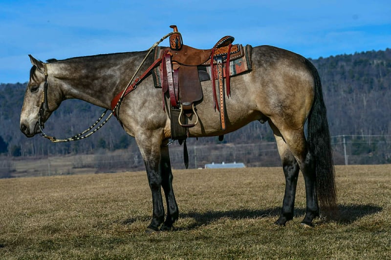 𝐉𝐀𝐍𝐔𝐀𝐑𝐘 ⭐️𝑨𝒍𝒍 𝑺𝒕𝒂𝒓 𝑳𝒊𝒏𝒆𝒖𝒑⭐️ Happening now thru MONDAY | JANUARY 26th - Available EXCLUSIVELY on HorseBid's website! For more details and to register visit: www.Horsebid.com CONSIGNOR CONTACT: Marlis Farm 814-777-0607 LOCATION: Rebersburg, PA BREED: Quarter horse REGISTERED: Yes REGISTERED NAME: Poco Buckin Doc Bar COLOR: Buckskin HEIGHT: 15.3 AGE: 8 GENDER: Gelding "Poco Buckin Doc Bar" is a gorgeous 2017 model buckskin gelding that goes by the name of Hickory in our barn. Hickory is and 8 year old AQHA registered gelding that stands 15.3 hands tall and is built like a tank. Hickory is exceptionally well broke, he neckreins and side passes and has a smooth walk trot and rocking chair slow lope. Hickory has been a pleasure to have around and he does not have a bad day it seem, he doesnt shy or jump away from objects, he just stops and looks and keeps on walking like hes seen it everyday. Hickory is a well minded gelding thats super gentle and gives you his 100% everytime you take him out. Hickory rides great in the arena and picks up his correct leads. He has been on trail rides and rides out alone or in a group. Hickory rides the same everyday, we can let him sit a month and tack him up and he lopes off like he never missed a beat. Hickory has been to town and traffic doesnt bother him. I think anybody can ride him whether you are inexperienced or you want to take him and show him. Hockory is very gentle and loves attention and will walk up to you in the pasture everytime. He has been exposed to different farm animals and different obstacles and doesnt mind the tarp or bouncing balls and will carry the flag. Hickory stands to be washed and bathed, stands to be tacked and mounted and rides off with spur pressure or woice commands. Hickory sells sound and with no bad habits. He has a current coggins test and is ready to move into his forever home. I hope that his new family enjoys him as much as we do. Feel free to call Mark with any questions and or if youd like to come see him, 814 777 0607 We can help arrange shipping anywhere!!