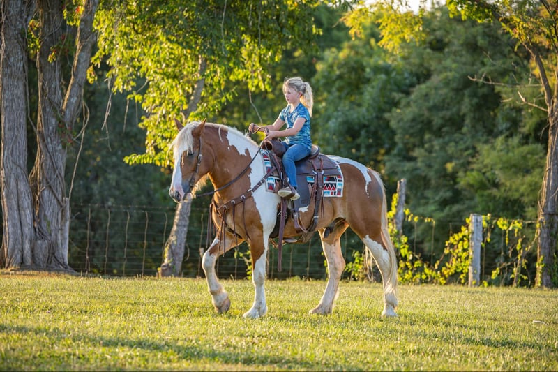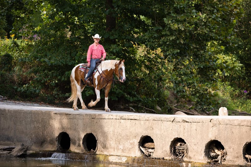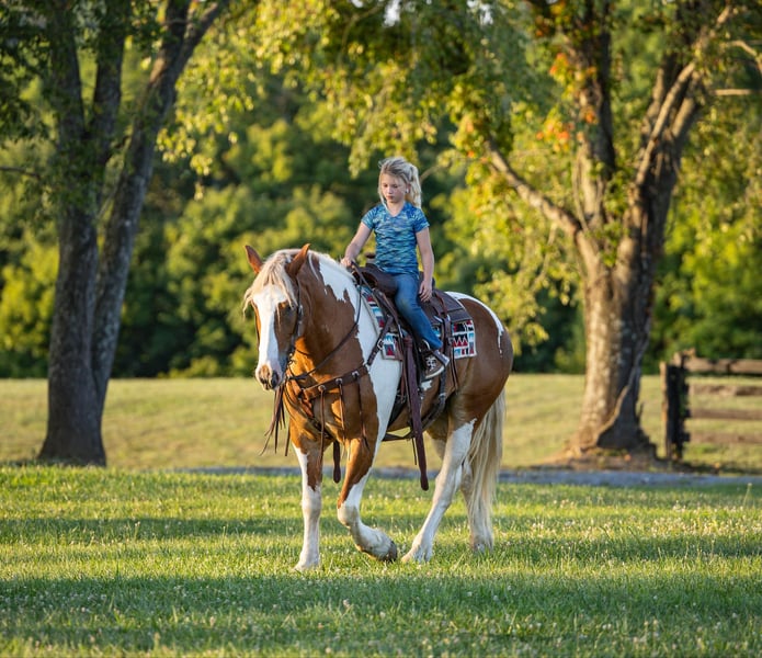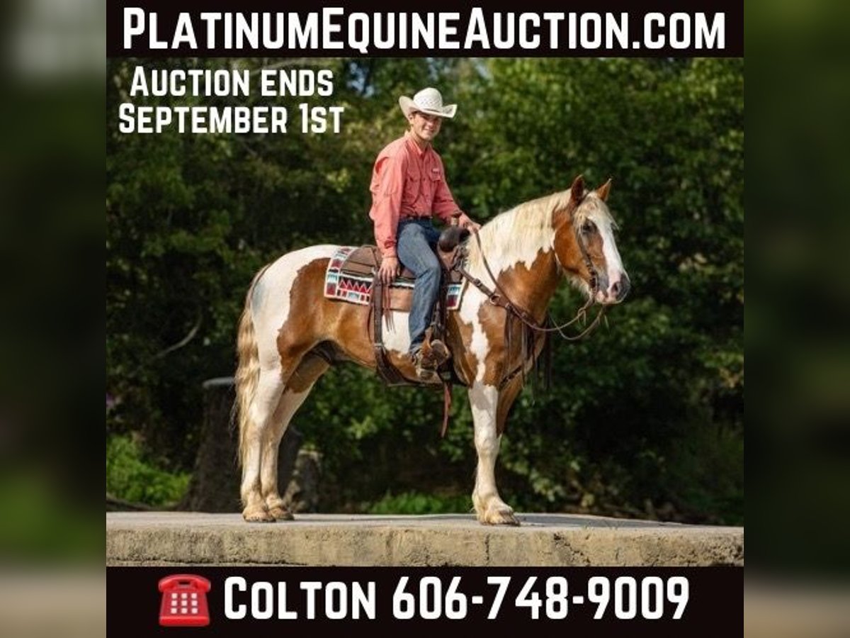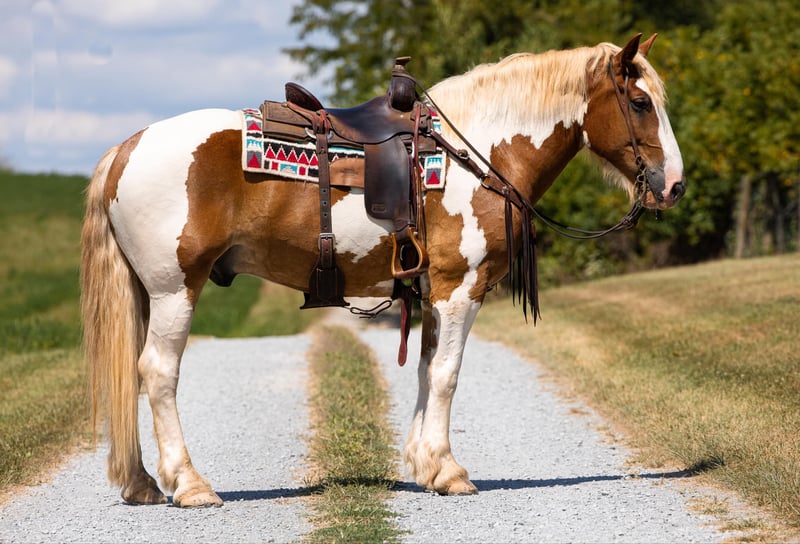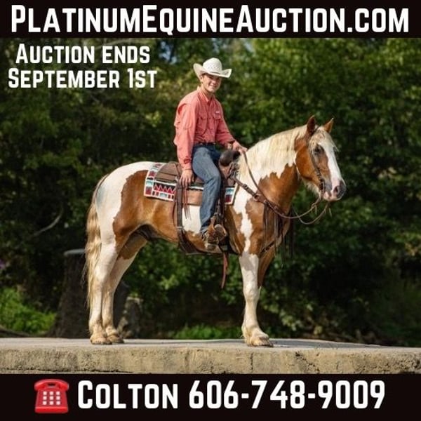 ONLINE AUCTION Place your bids at www.PlatinumEquineAuction.com Starting Bid $3500 Auction ends September 1st, 2024 Need a new saddle? Check out White Rock Saddles on our website or Facebook! Here he is! Everyone meet Big Chief. Big Chief is the guy you’ve been searching for. He is stout, kind, and athletic. Standing at 16.1 hands tall, don’t let his size fool you! He will lope small circles, do figure eights while catching both leads and will one step lope just like any smaller fancy broke horse. He knows all his cues and will stop on a dime. If you’re looking for safety and luxury, Chief is the one for you! This 6 year old spotted draft cross gelding is surefooted and confident on any trail, crossing any obstacle that comes his way. He will ride in the front or the back, he doesn’t care. He has been ridden by kids, novice riders and is loved by all! He is broke to drive and been hooked to numerous farm equipment pieces, to be worked as well. He is broke extremely well in a carriage. He will “whoa” and “go” just on voice command alone. Chief has been giving carriage rides at the local fairgrounds. He is traffic safe. Chief has been used to pony horses around the farm. We have used him to push and check cattle on the farm. He has been ridden in our local parade as well. Chief is about as diverse as one can get. He is truly one in a million. He is a crowd favorite everywhere he goes. Chief is the first to meet you at the gate and is friendlier than your local used car salesman, he always wants to be where the people are! He will ground tie to be tacked, harnessed, bridled and shod. He stands to be bathed & groomed! He will move to a mounting block with just a voice command to be mounted for riding. He will stand when mounted and dismounting too! Chief is willing to please in any circumstance and is the perfect addition to your family! He is one of the best horses we’ve had the privilege to own. He is smart, willing, beautiful, safe, & broke, all in one. New coggins and health paper will be provided. We can help arrange shipping if need be. Please contact us with any questions, or for more information on Chief! Contact PR Quality Horses Colton 606-748-9009 Haley 859-475-2621 Located in Ewing, KY. ONLINE AUCTION Place your bids at www.PlatinumEquineAuction.com Starting Bid $3500 Auction ends September 1st, 2024 Need a new saddle? Check out White Rock Saddles on our website or Facebook!