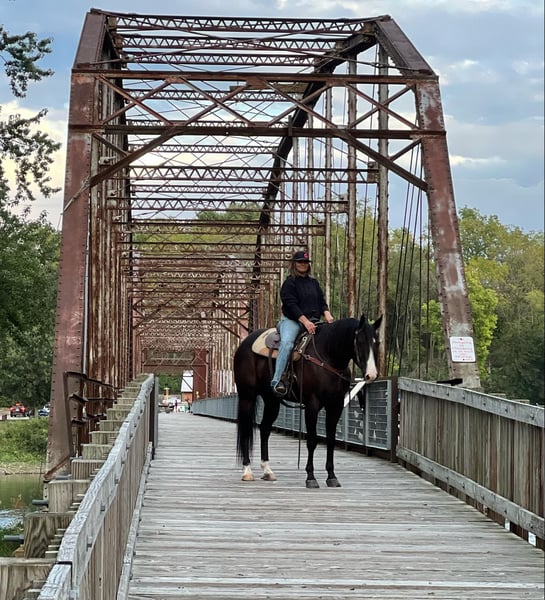 ONLINE AUCTION Place your bids at www.PlatinumEquineAuction.com Starting Bid $3500 Auction ends November 10th, 2024 Need a new saddle? Check out White Rock Saddles on our website or Facebook! Seeker is a 6-year-old, 16.1-hand black AQHA gelding, bred for western pleasure with splendid bloodlines, including his sire, the Quarter Horse Congress champion Night Moves, and his dam’s Zippo Pine Bar lineage. Weighing 1300 pounds, he is all muscle and moves with the elegance of a western pleasure horse, excelling both in the arena and on the ranch. He has been ridden extensively in various environments, from trails and camping trips to cattle work, proving himself surefooted, traffic-safe, and unbothered by obstacles like water, ditches, and bridges. This gentle giant has impeccable ground manners, standing perfectly still for saddling, bridling, and mounting, whether from the ground or a block. Seeker is a versatile and reliable mount for any rider, from children to seniors, having been ridden in places as diverse as the canyons of West Texas and Iowa’s wildlife reserves. He loves water, enjoys baths, and is easy to handle, with no bad habits or lameness. Up-to-date on all vet care, including shots, vaccinations, and dental work, Seeker also comes with a pre-purchase vet check and x-rays. He is equally comfortable living in a pasture or a stall. Seeker has been shown by our children in local 4H shows. Located in Lisbon, IA. Contact John McPhail 319-721-7714 with any questions. ONLINE AUCTION Place your bids at www.PlatinumEquineAuction.com Starting Bid $3500 Auction ends November 10th, 2024 Need a new saddle? Check out White Rock Saddles on our website or Facebook!