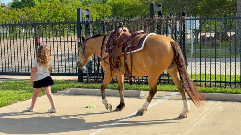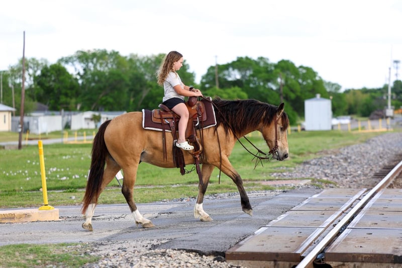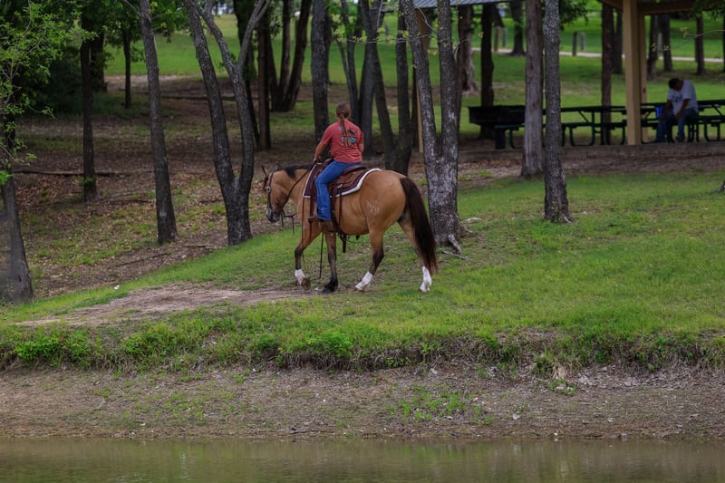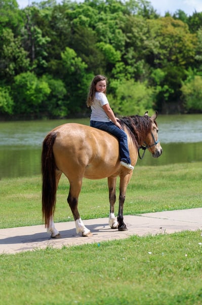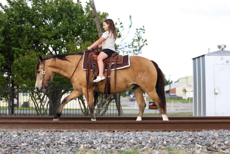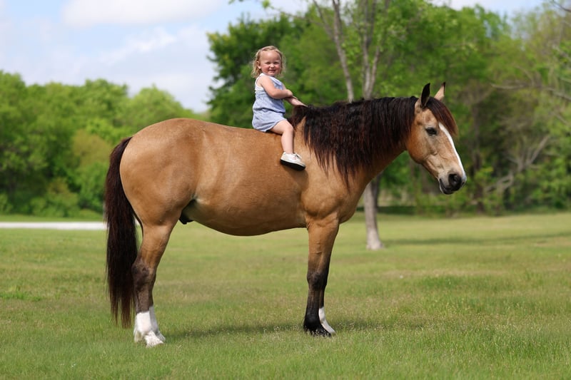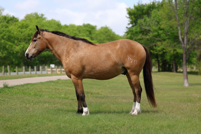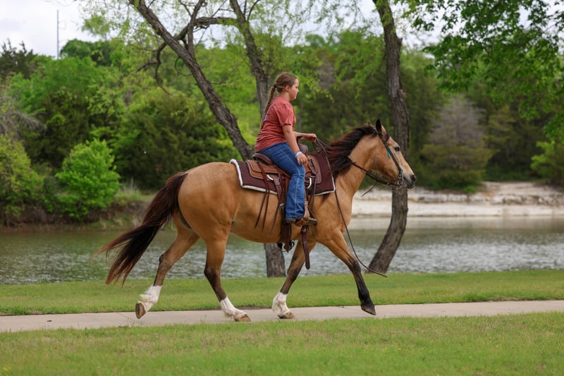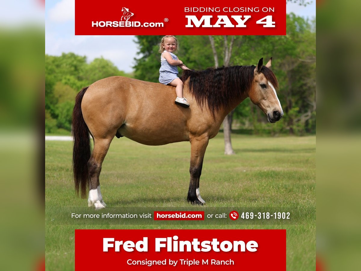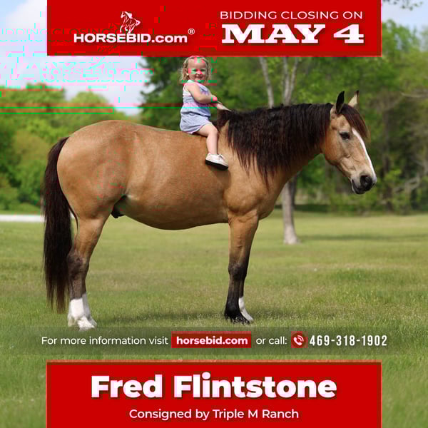 ▪️▫️◾️𝐭𝐡𝐞 𝑴𝒂𝒚 𝐒𝐞𝐥𝐞𝐜𝐭◾️▫️▪️ Happening now thru MONDAY | MAY 4th - Available EXCLUSIVELY on HorseBid's website! For more details and to register visit: www.Horsebid.com CONSIGNOR CONTACT: Triple M Ranch 469-318-1902 LOCATION: Talty, TX BREED: Gaited/Quarter Horse REGISTERED: No COLOR: Buckskin HEIGHT: 14 AGE: 9 GENDER: Gelding Meet Fred Flintstone. He’s a Yabba Dadda Doo!!! Fred Flintstone is a stunning buckskin gelding. He is just as cute as he can be. He is one of those good honest all around trail horse and kid horse deluxe. Fred is the kind that is bombproof for absolutely anyone to ride. He is kid tested and grandparents approved. He has been rode by ages 2 yrs old to 86 yrs old. He is a been there done that type. A well seasoned horse with thousands of miles under his belt. He is the perfect size of 14 hands tall. Not too big not too small! And he is the perfect age of 9 yrs old. (Vet confirmed on age). Fred Flintstone is a half gaited/half quarter horse. So he is the perfect mix for an absolutely smooth ride. He is not a prancy or hyper horse. When asked he will step up in the perfect little running walk gait. It’s a very natural laid back gentle kind of gait. He will walk or kick him up to that little gait. He will go both slow or fast. You just set the speed to your liking. As soon as you are done he will drop right back down into a walk. It’s kinda of liking putting your car on curse control. You set the speed and he will do the rest. He is a super smoooooth ride!!!! And oh so easy and fun. If you have back or hip issues and need a comfortable ride this is him. He is a short stout made horse that has plenty of foot and bone. Plus absolutely stunning to look at. Fred is trail riders dream horse. He is a true gentleman to be around on the ground. He is a perfectly well mannered gelding. He stands tied at the trailer, stands for farrier, vet, and bathes well. He stalls well, and enjoys turn out time. He gets along with other horse well. He's is very brave and takes everything you expose him to in stride. Fred Flintstone will cross whatever you come to on the trails.. creeks, bridges, deadfall, wildlife, rocky terrain. We have been through all kinds terrain, had him around gunfire, tarps, city lights, city traffic, and cattle, all of which he has handled very well. Fred has a true one hand neck rein, and is very light in the mouth. He backs up with ease. He rides out alone just fine. Not at all buddy sour or herd soured. Not at all hyper. I can’t stress that enough. Other gaited I have been around seem to want to go all the time. That is not him. He will go when asked then he will walk the rest of the time. You wouldn’t even know he was gaited till you speed him up. We have used him to check our cattle and ride out on the ranch. He likes working cattle and being around them. We have took him on many mountain rides and over ight camping trips. He is a seasoned real deal trail horse. We have let the kids ride him through town. Absolutely not fazes this guy. Not at all spooky or watchy. No bad habits at all. Absolutely no buck or silliness when riding him. Fred Flintstone is a super easy keeper. Requires no maintenance of any kind. No special feeds or supplements. He can go bare foot or put shoes on him. You can stall him or turn him out. Doesn’t matter to him. He is easy peasy. PLUS he sells 100% sounds with no health issues. He did have a pre evaluation done by our vet (included in the pictures). If you have anymore questions about him feel free to call. We would love to visit with you about him. We can help you arrange shipping anywhere. He is up to date on all vaccinations, worming, had his teeth checked, feet trimmed. He is ready to go to his new home. ❤️