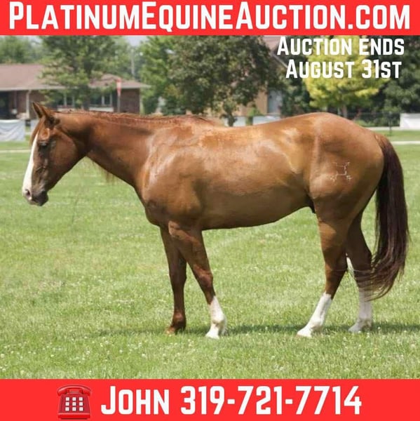 ONLINE AUCTION Place your bids at www.PlatinumEquineAuction.com Starting Bid $3500 Auction ends August 31st, 2025 Need a new saddle? Check out White Rock Saddles on our website or Facebook Ducky is an 8-year-old, 14.1-hand sorrel gelding with excellent conformation, a long mane and tail, and just the right touch of chrome. He boasts a world-class pedigree featuring Peptoboonsmal, Shining Spark, and Moonlight Dancer—cow-bred legends known for combining exceptional brains, eye-catching looks, and proven ability. Calm, collected, and gentle, Ducky is 100% sound and safe for the whole family. He has been used in mounted shooting, ranch riding, trail riding, and rodeos. He works cattle, goats, and sheep, doctors calves, and handles pasture or feedlot roping with ease. He stands perfectly to mount and dismount, and nothing rattles him—not fireworks, loud noises, or fast movements. He’s been a steady, reliable mount in Fourth of July parades, grand entries, and flag presentations. Athletic and versatile, Ducky navigates water crossings, ditches, and steep terrain without hesitation. He has impeccable ground manners, gets along well in the herd, and rides out confidently alone. Up-to-date on vaccinations, deworming, and shoeing. No bad habits. Call John McPhail 319-721-7714 with any questions. Located in Lisbon, IA. ONLINE AUCTION Place your bids at www.PlatinumEquineAuction.com Starting Bid $3500 Auction ends August 31st, 2025 Need a new saddle? Check out White Rock Saddles on our website or Facebook