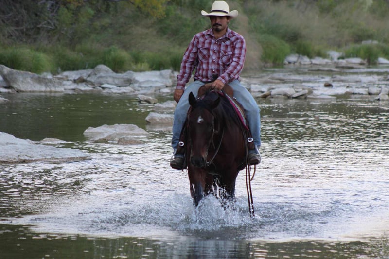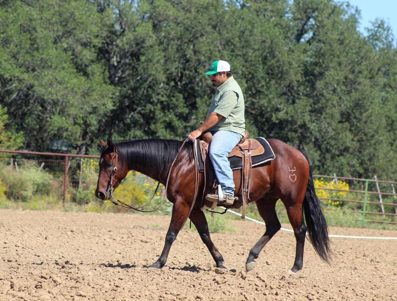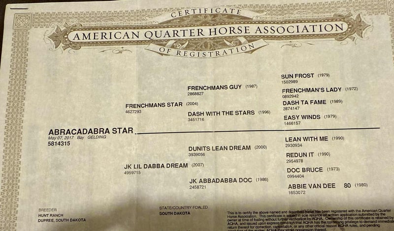 ONLINE AUCTION Place your bids at www.PlatinumEquineAuction.com Starting Bid $3500 Auction ends October 26th, 2025 Need a new saddle? Check out White Rock Saddles on our website or Facebook If you’ve ever dreamed of owning the kind of horse that turns heads and gets the job done, Abracadabra Star aka Dar is the one you’ve been waiting for. This stunning 2017 AQHA bay gelding stands 14.2 hands tall and truly brings it all to the table — brains, beauty, and unbeatable bloodlines. He proudly wears the Hunt Ranch brand and carries a pedigree packed with performance royalty like Frenchman’s Guy, Dash Ta Fame, Sun Frost, and Lean With Me. Built and bred to be a star, Dar is extremely well broke with a natural low headset, a big, correct stop, and an impressive turnaround. In the arena, he walks, trots, and lopes smooth, correct circles with ease. He’s ready to step into the ranch versatility classes or head out to work cattle — gathering, sorting, roping, and doctoring — he handles it all like a pro. Dar has also been started on the heel side and shows great promise in the roping pen. Out on the trail, he’s as solid as they come — confidently navigating rocks, brush, creeks, rivers, and hills. He’s sure-footed, low-headed, and calm in any terrain. Take him down the road, and he’ll walk through traffic like it’s no big deal. Whether riding out alone or with a group, Dar is steady, reliable, and always level-headed. He doesn’t get herd-bound or spooky, and he approaches every new challenge with quiet confidence. Obstacle course? No problem. He takes everything in stride. On the ground, Dar is just as easy — sweet-natured, respectful, and a total gentleman. He gets along well with other horses, whether he’s in a stall or turned out in the pasture. There are plenty of bay geldings out there — but finding one with Dar’s combination of talent, training, and temperament is a rare thing. He’s truly one of the nicest, most versatile, well-broke geldings we’ve ever offered. Whether you want a ranch partner, show prospect, trail mount, or rope horse — Dar is ready to go to work! We are open to anyone interested in him to schedule a time to come see him or if you can’t make it schedule a FaceTime showing to see him. If you need help with transport don’t hesitate to ask we have a list of reputable haulers that can get him safely to your doorstep WORLD WIDE including, Alaska , Mexico, Hawaii, Canada and anywhere in between from Stephenville, TX. Contact Michelle with M $ Performance Horses 661-817-9120 with any questions. ONLINE AUCTION Place your bids at www.PlatinumEquineAuction.com Starting Bid $3500 Auction ends October 26th, 2025 Need a new saddle? Check out White Rock Saddles on our website or Facebook