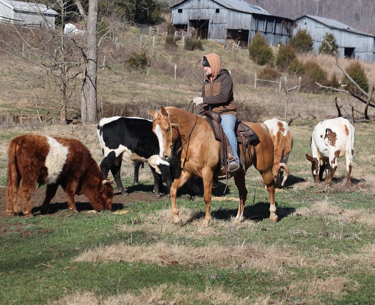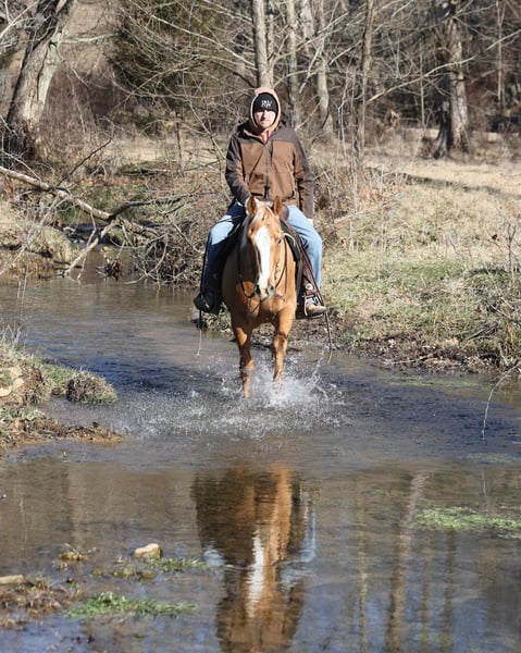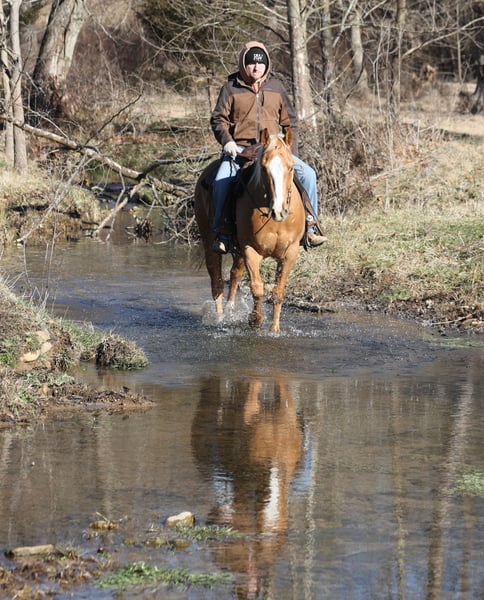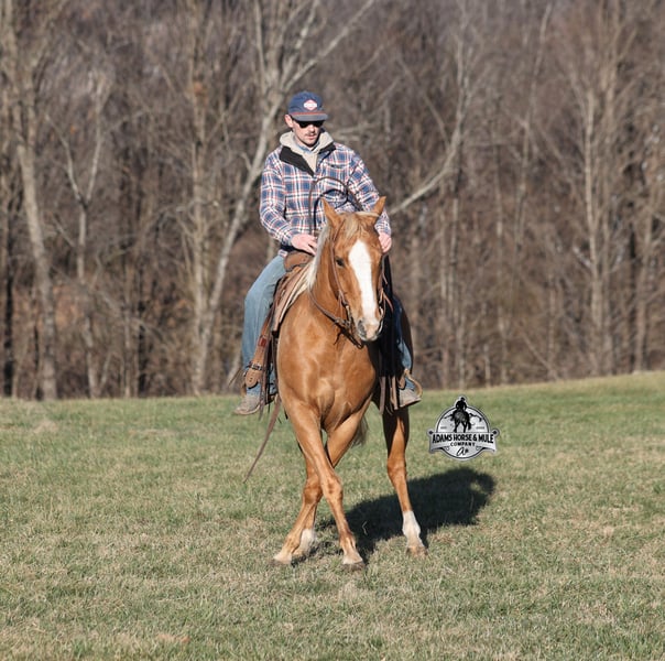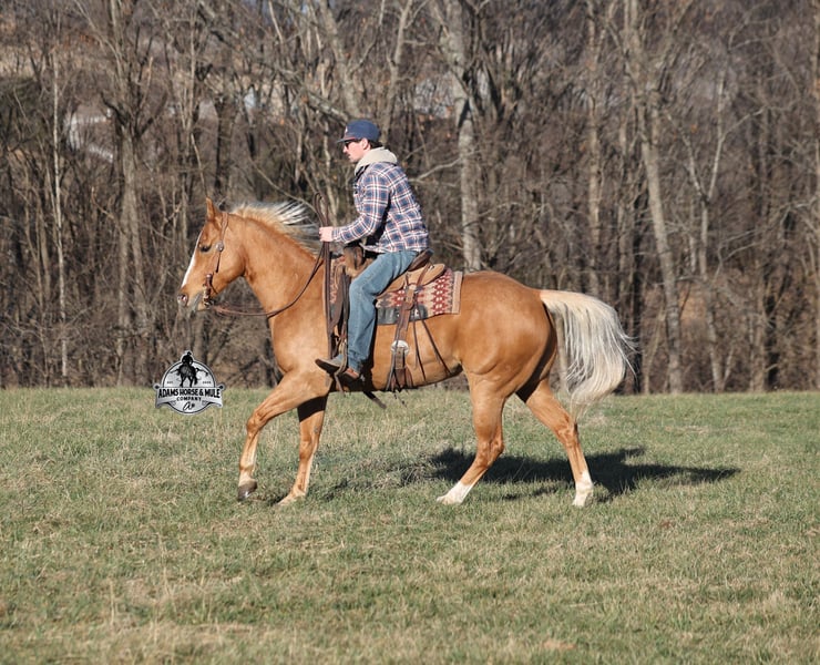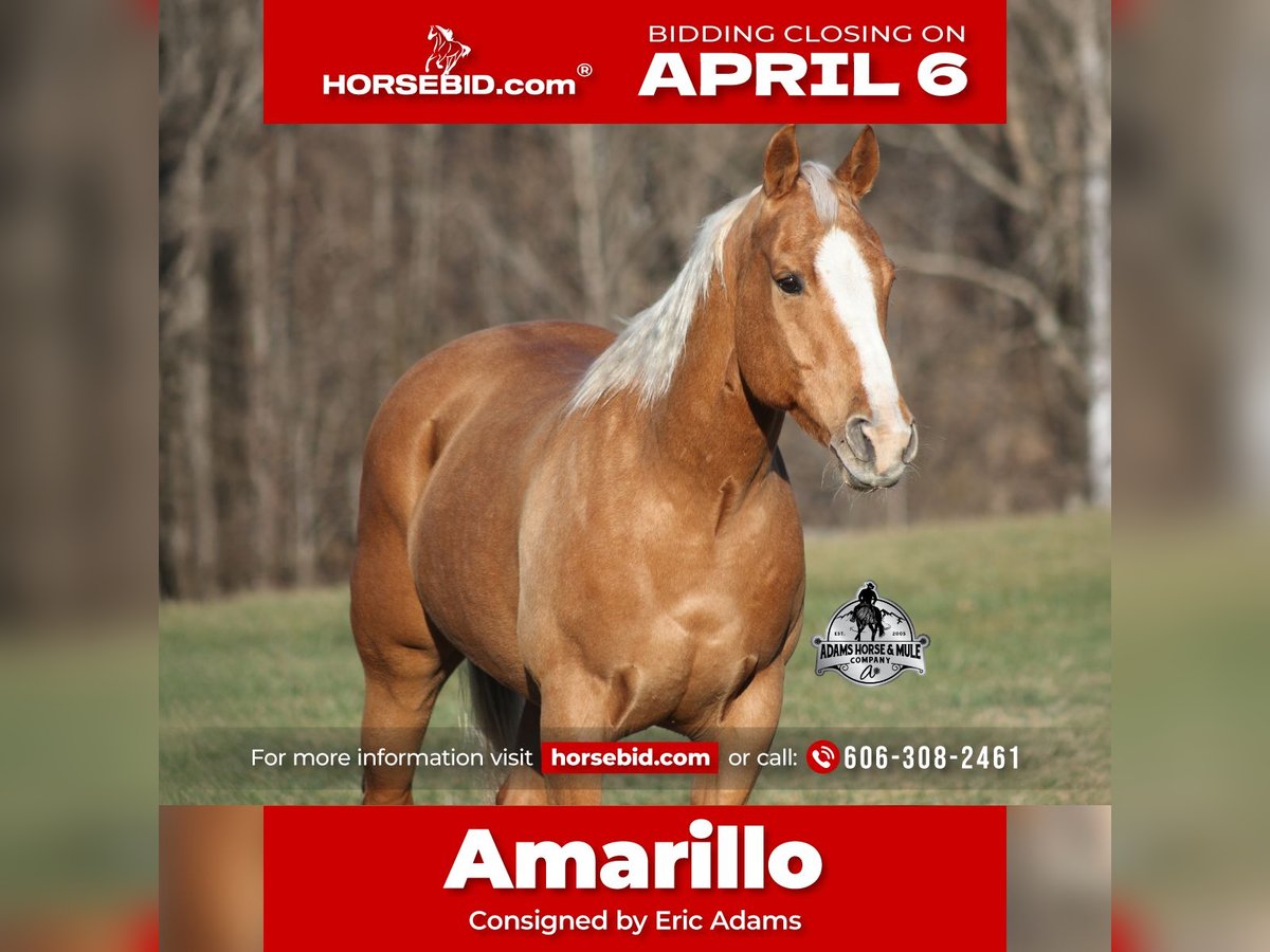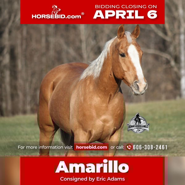 🌟𝑨𝒑𝒓𝒊𝒍 𝐀𝐋𝐋 𝐒𝐓𝐀𝐑 𝐋𝐈𝐍𝐄𝐔𝐏🌟 Happening now thru MONDAY | APRIL 6th - Available EXCLUSIVELY on HorseBid's website! For more details and to register visit: www.Horsebid.com CONSIGNOR CONTACT: Eric Adams 606-308-2461 LOCATION: Mt. Vernon, KY BREED: Quarter Horse REGISTERED: No REGISTERED NAME: Amarillo COLOR: Palomino HEIGHT: 15 AGE: 9 GENDER: Gelding Amarillo is a well built golden Palomino, gelding, standing 15hh and he is 9 years old. Amarillo has been used around the ranch checking cattle and he has roped and doctored several as well. He knows all about ranch work and is prepared to help you anytime that the situation calls for it! Amarillo loves to just cruise along slow and easy down the trails and he is a horse that anyone will enjoy! He is an excellent trail horse and has been ridden in multiple states from Texas to Kentucky. He will cross creeks, ditches, logs and navigate rough rocky areas. He is safe riding in traffic. He has a smooth jog, a nice lope, has a good stop, turns a circle both ways and backs with ease! Amarillo is a confident horse on the trails and will lead the crew or head out alone with no issues! He has been exposed to all kinds of wildlife such as deer or turkey and will go anywhere that he is asked too. He has been ridden many miles in the mountains and encountered every obstacle possible on the trail. He will go up or down even the steepest slopes, across deep creeks, over downed trees, and over all types of rough terrain while still being sure footed. Amarillo is a horse that anyone would be proud to own and one that anyone will love!!! Feel free to call Eric 606-308-2461 with any questions.