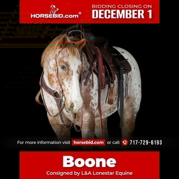 ⚜️ 𝓽𝓱𝓮 𝐇𝐨𝐫𝐬𝐞𝐦𝐚𝐧'𝐬 𝓢𝓱𝓸𝔀𝓬𝓪𝓼𝓮⚜️ Happening now thru MONDAY | DECEMBER 1st - Available EXCLUSIVELY on HorseBid's website! For more details and to register visit: www.Horsebid.com CONSIGNOR CONTACT: L&A Lonestar Equine 717-729-6193 LOCATION: Needmore, pa BREED: Quarter horse REGISTERED: No COLOR: Appaloosa HEIGHT: 15.1 hh AGE: 9 GENDER: Gelding Family Friendly • Trail Proven • Arena Ready This handsome 9-year-old, 15.1hh Appaloosa gelding is the perfect all-around partner for a family, lesson program, or anyone searching for a safe, enjoyable, and steady horse. He is gentle, dependable, and has a sweet, people-loving personality. Highlights: • Outstanding trail horse; confident, sure-footed, and loves being outdoors • Family proven and approved; suitable for kids, adults, and even grandma • Calm and consistent enough to be a solid lesson horse • Rides well in the arena with a good whoa and an easy, responsive handle • Very much more whoa than go—laid-back, steady, and comfortable for all levels • Patient, forgiving temperament and a true best-friend type Whether you want a dependable trail partner, a safe mount for newer riders, or a kind gelding to enjoy around the farm, this horse checks every box. He is ready to step into his next home and make someone very happy.