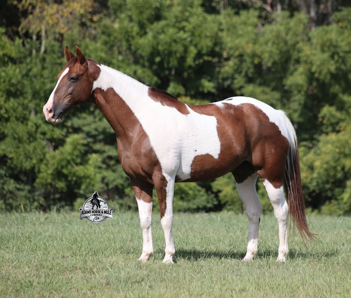 Go to visit our website for more pics and a video www.AdamsHorseAndMuleCo.com AHAMC has been in the horse business and sold horses over the internet since 2005. We have a long track record of success with hundreds of happy customers. We work hard to match riders with the correct horses and specialize in beginner safe, family friendly horses that have been used and checked out by our family! We can set up transportation anywhere in the US and look forward to working with you. Meet Tonto, a super stout built paint gelding that is standing around 15.1hh. He will weigh 1300lbs, he is 8 years old and he has all the good looks, and (the best part) the mindset that anyone could ask for! Not only does he look cool, he has all of the other boxes checked as well… he is Mr. Personality, as friendly as they come, loves attention and is very calm natured. Tonto has been ridden by every member of our family all the way down to our 6 year old daughter and he will be the perfect horse for the whole family to enjoy! He has been ridden around the ranch, checked cows and pushed them around. Tonto is great on trails and he will cross creeks, ditches, logs and navigate rough rocky areas. He has a smooth jog, one of the slowest and softest lopes that you will find, a good stop and reins around as well! He has been exposed to all kinds of wildlife such as deer or turkey or other animals like cows or dogs and will go anywhere that he is asked too. He has been ridden many miles in the mountains of Eastern Kentucky and encountered every obstacle possible on the trail. He will go up or down even the steepest slopes, across deep creeks, over downed trees, and over all types of rough terrain while still being sure footed. Tonto is not cinchy, cold backed, does not crib or weave. He is a super cool horse that anyone is sure to love!!! Feel free to call Eric 606-308-2461 with any questions.