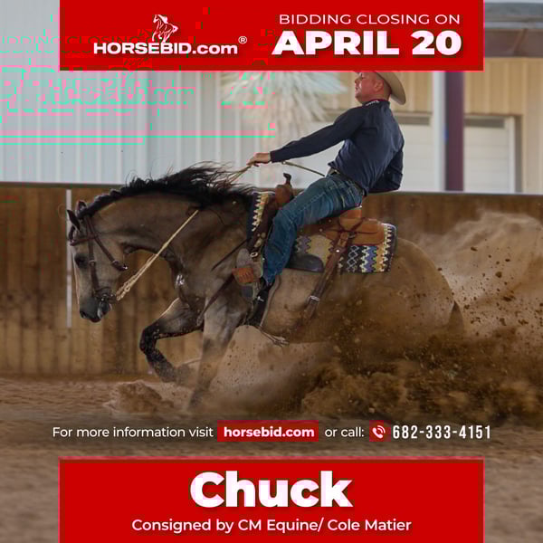 ⚜️𝐭𝐡𝐞 𝓔𝓵𝓲𝓽𝓮 𝐒𝐩𝐫𝐢𝐧𝐠 𝐂𝐥𝐚𝐬𝐬𝐢𝐜⚜️ Happening now thru MONDAY | APRIL 20th - Available EXCLUSIVELY on HorseBid's website! For more details and to register visit: www.Horsebid.com CONSIGNOR CONTACT: CM Equine/ Cole Matier 682-333-4151 LOCATION: Weatherford, TX BREED: Quarter Horse REGISTERED: Yes REGISTERED NAME: THEVOODOOTHATUDOO COLOR: Buckskin HEIGHT: 15.2 AGE: 9 GENDER: Gelding If you’re looking for a proven, finished gelding that can step straight into the pen and be competitive while still being safe enough for a non-pro, green rider, youth,Chuck checks every box. He has been successfully shown in the Green, Rookie, Non-Pro, and Level 1–2 Open, giving him the kind of seasoning and experience that’s hard to find. Chuck is especially appealing for the ranch riding side, he has a natural, eye-catching extended trot and the kind of presence that stands out immediately. He would be extremely competitive in ranch riding while still maintaining his reining foundation. Outside the arena, he’s been ranch ridden, trail ridden extensively, and exposed to obstacle work, making him as dependable as they come. He is exceptionally quiet, honest, and forgiving, with zero vices. He is easy to show, easy to live with, and requires minimal maintenance ,the kind of horse you can rely on day in and day out. Chuck is also physically impressive ,strong, balanced, and beautiful,paired with a personality that makes him a barn favorite. Sound, seasoned, and ready to go on with in any direction. Horses like this , with real show experience, versatility, and true rideability.