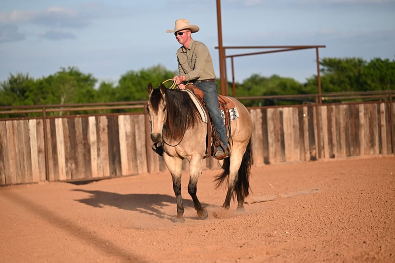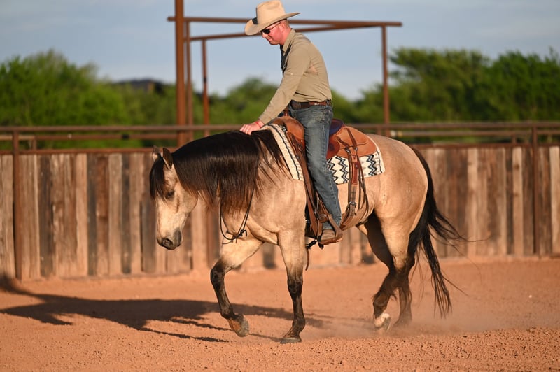 Chuck, 9 jaar oud, 1,58 m (15,2 hh) buckskin AQHA-ruin, hengst