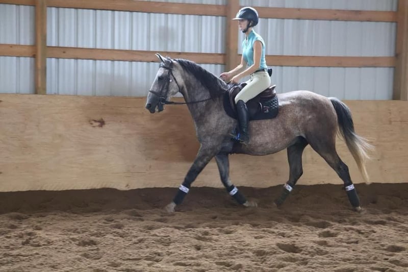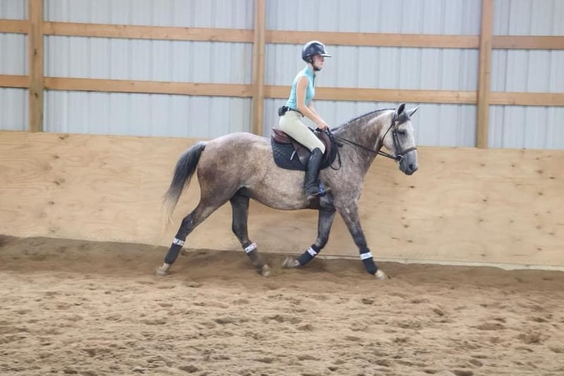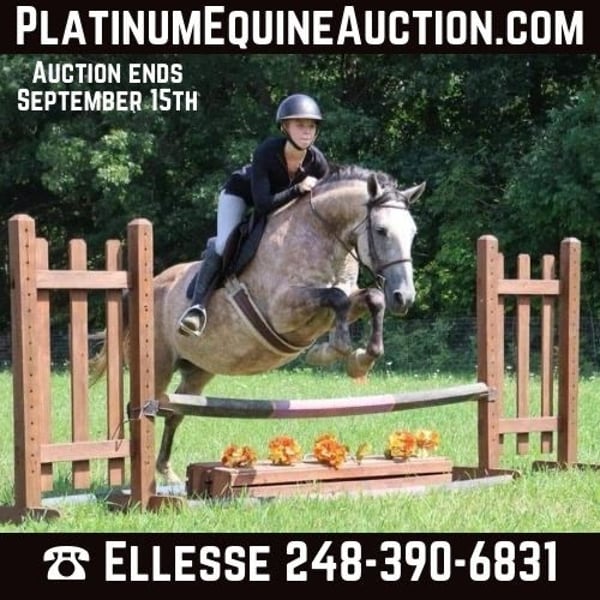 ONLINE AUCTION Place your bids at www.PlatinumEquineAuction.com Starting Bid $3500 Auction ends September 15th, 2024 Need a new saddle? Check out White Rock Saddles on our website or Facebook! We are proud to introduce Valentino! He is a stunning 7 year old gelding. He is covered head to toe in dapples. He is an Andalusian QH cross who stands at 15.2hh. Valentino has lovely movement. He has a great walk, a floaty trot, and an adjustable canter. He has the most beautiful mane and tail. Valentino is the whole package with his noble appearance, intelligent mind, and inquisitive demeanor. He bonds deeply with his person. Valentino is the type who will work all day, whether it’s in town, in the arena, or on the trails. He has great hooves and a thick bone structure. Valentino was started on the ranch working the cows, completing farm chores and checking fences. He knows how to move on and off seat and leg pressure. He slides right into his stop. He is trained through 1st level dressage and knows all lateral movements. Valentino has recently been started over fences and attended a hunter pace. He’s absolutely fantastic out in the fields and will jump in beautiful form. He has also done quite a few trail obstacle courses and navigates them with ease and finesse. Valentino has the brains, the beauty the sense, and versatility to excel in just about anything! He is that all around horse! Located in Howell Michigan 48855. Call Ellesse Schwartz for more information 248-390-6831. ONLINE AUCTION Place your bids at www.PlatinumEquineAuction.com Starting Bid $3500 Auction ends September 15th, 2024 Need a new saddle? Check out White Rock Saddles on our website or Facebook!