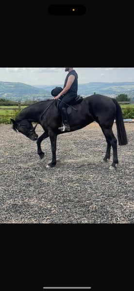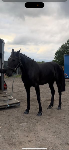 This pretty Standardbred mare is a real eye-catcher with a kind expression and lovely presence. She has a gentle, willing temperament and is easy to handle on the ground — stands well for grooming, tacking, and farrier, and is respectful with good manners. She moves smoothly with a comfortable stride and shows a sensible, level-headed attitude. This mare is straightforward to work with and aims to please, making her a nice fit for someone looking for a reliable partner or a quality all-around horse. She has been well cared for, is sound, and is up to date on routine care. With her looks, personality, and solid Standardbred work ethic, she would make a great addition to the right home.