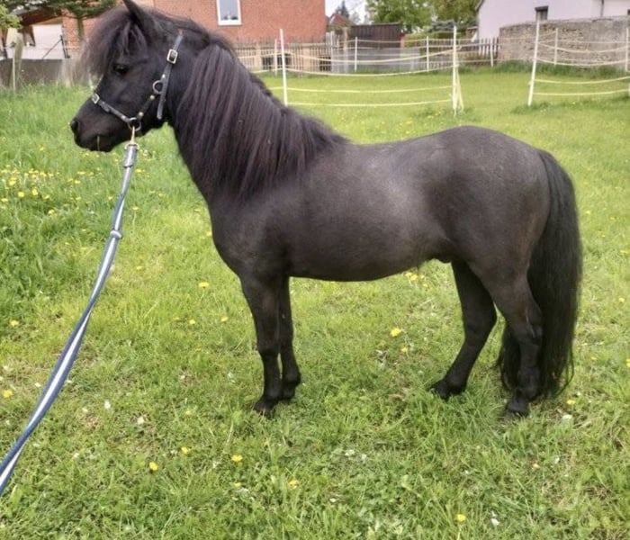 Ich verkaufe im Auftrag einen American Miniature Horse Hengst – Rappe, Geburtsjahr 2017 Er überzeugt er durch sein charmantes Erscheinungsbild und seine freundliche Art. Mit einem Stockmaß von 86 cm ist er perfekt für Zuchtzwecke geeignet und bringt die typischen Merkmale dieser besonderen Rasse mit sich. Er hat die beste Abstammung und volles Papier. Ist lieb im Umgang und super verschmust. Er war in Frankreich dreimaliger Champion Champion de France: 2 Jährige Hengste Champion de France. Farbe schwarz Champion de France: Präsentation Pferd-Mensch Er eignet sich ideal für die Zucht und ist ein echtes Highlight für Miniature Horse Liebhaber. Bei Interesse oder weiteren Fragen stehe ich gerne zur Verfügung. Besichtigung nach Vereinbarung möglich. Bei vereinbarten Besichtigungsterminen werden 20 € Vorkasse fällig. Diese werden bei Erscheinen zum Termin, direkt erstattet, egal ob das Pony gekauft wird oder nicht! Leider müssen wir das so machen, da Termine heutzutage gerne mal vereinbart werden und dann nicht mal abgesagt wird. Der Preis ist nur so niedrig, da der Besitzer in Not geraten ist und ihm der Stall gekündigt wurde. Das Pony steht jetzt bei uns und bleibt so lange, bis wir ein liebevolles Zuhause für ihn gefunden haben. Das Pony wird nur an erfahrene Pferdehalter verkauft. Wünschenswert wäre eine Offenstallhaltung oder zumindest viel Weidegang am Tag.