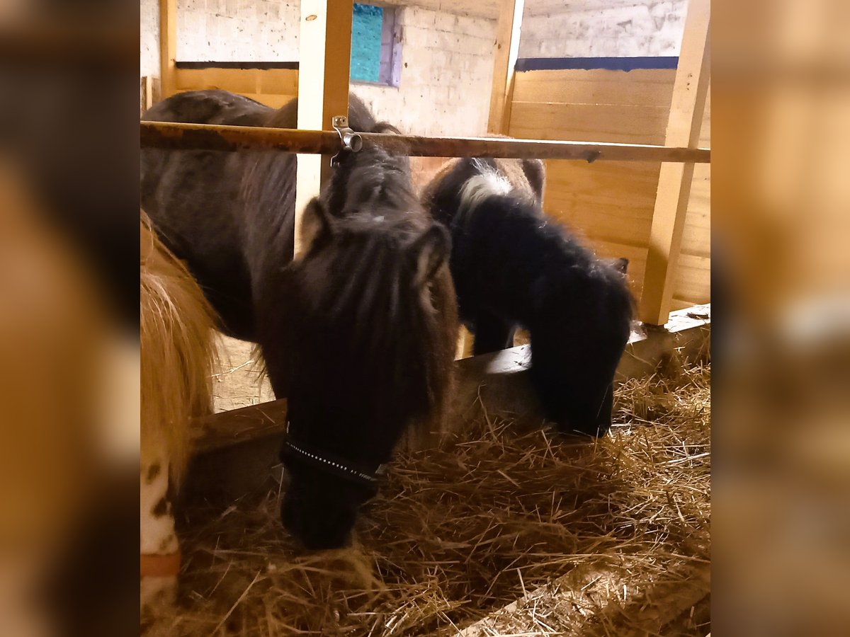 Schweren Herzens verkaufen wir unsere schöne 6-jährige, schwarze, reinrassige American-Mini-Horse-Stute "Surprise" (Stockmass 95cm), sehr lieb im Umgang, an Kinder gewöhnt, gefahren (Sulky Trabrennen), guter Charakter, verladefromm u. gelände-/verkehrssicher, robust & gesund, geimpft, gechippt und entwurmt, Hufe gemacht. Surprise ist an Freilauf- und Gruppenhaltung gewohnt mit anderen Ponys und Kleinpferden. Sie hat zurzeit auch noch ein abgesetztes Hengst-Fohlen (geb. 2024), das auch zu verkaufen ist. Die beiden werden einzeln oder zusammen an einen schönen Platz abgegeben, wo sie gefordert und gefördert werden sowie ein artgerechtes Leben in Freilauf- und Gruppenhaltung geniessen dürfen. Verkaufspreis für die Stute 3100.- SFr. Verkaufspreis für das Hengstfohlen 1200.- SFr. Gerne können die zwei Ponys in Gettnau LU besucht werden.