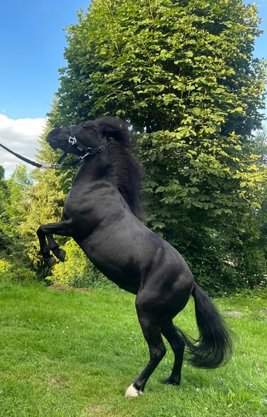 Pony-Schwestern in beste Hände abzugeben, mit Trense und Kutschgeschirr Wir geben unsere zwei verschmusten Pony-Damen nur gemeinsam in liebevolle und fördernde Hände ab. Uns ist wichtig, dass sie künftig mehr Beschäftigung bekommen. Hanni (schwarz) 16.05.2018, 80cm Nanni (weiße Söckchen) 13.05.2020, 84cm Vater: Scott Creek Monarch Moody Blues Die beiden sind neugierig, brav im Umgang und fordern ihr Streicheln regelrecht ein. Sie kennen Hunde und andere Pferde, laufen brav nebeneinander und beherrschen Longe & Doppellonge. Geschirr und Trense sind vorhanden. Aktuell tragen sie noch etwas „Luxuspolster“ am Bauch – perfekte Motivation für ein bisschen Training und Spaß. Beide besitzen einen Equidenpass, entwurmt, geimpft und Kerngesund. Für weitere Infos bitte schreiben oder anrufen. Nur ernstgemeinte Anfragen.