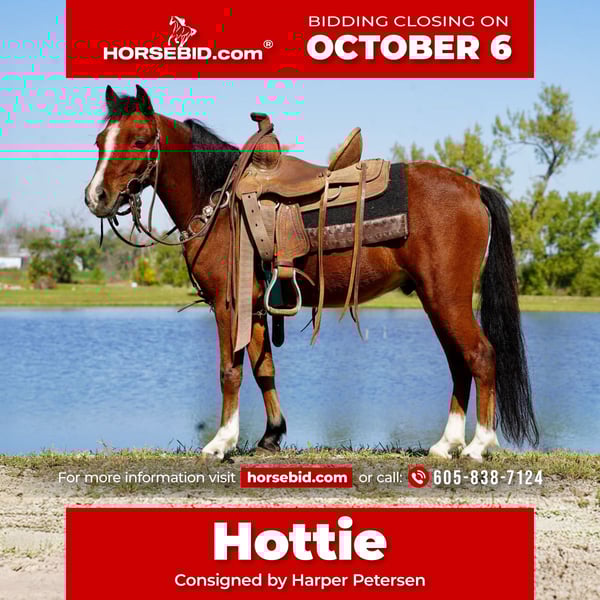 🍂 𝓐𝓾𝓽𝓾𝓶𝓷 𝑨𝑳𝑳 𝑺𝑻𝑨𝑹 𝑳𝑰𝑵𝑬𝑼𝑷 🍂 Happening now thru MONDAY | OCTOBER 6th - Available EXCLUSIVELY on HorseBid's website! For more details and to register visit: www.Horsebid.com CONSIGNOR CONTACT: Harper Petersen 605-838-7124 LOCATION: Corsica SD BREED: Double Registered mini REGISTERED: Yes REGISTERED NAME: Carefrees Rare n Hot COLOR: Bay HEIGHT: 34 AGE: 5 GENDER: Gelding CAREFREE'S RARE N HOT 2020 Model Double registered with AMHR and ASPC. Measured 35.3/4 at his show in June. Hottie was professionally trained and shown as a yearling in halter. Is broke to drive and ride, he is super sweet and gentle kids can climb all over him and under him, loves people and will follow you around for scratches, he is a easy keeper, good with other horses and ponies, good for farrier, loads/hauls/unloads good, Up to date on Vaccinations and deworming. Hottie is sound and healthy and ready to continue his showing or just a fun pony for your kids to enjoy. Call or text 605-838-7124 for more information