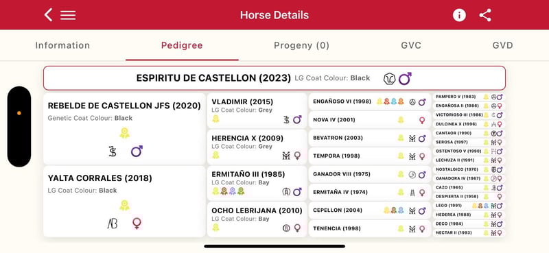 Elegant Andalusian Stallion – Born in 2023 Stunning Andalusian stallion, born in 2023. Standing at 15 hands, he embodies the classic Andalusian stature with a refined build and a captivating presence. Specially bred for dressage, this young stallion demonstrates natural talent, suppleness, and a willing attitude, making him an excellent choice for riders seeking a talented partner for competitive or leisure dressage. His striking appearance, combined with his promising movement and temperament, makes him a truly exceptional prospect. Family Background - Sire (Rebelde de Castellon) Decendent of Enganoso VI. Enganoso's lineage is from Marin Garcia. Enganoso has carried on his legacy to many of his offspring producing many champions in morphology, movement, and functionality competitions. Enganoso has produced great horses for dressage. Many of his offspring have competed throughout Europe in Grand Prix, the highest dressage level. - Dam (Yalta Corrales) Daughter of Hermitano. She carries on the lineage. Hermitano is one of the seven elite PRE's in the world. Hermitano comes from Escalera and Yeguada Militar bloodlines which are the essence of the original Spanish Horse. Ideal for experienced riders or trainers looking to develop a future star, this Andalusian stallion promises both beauty and performance. For more information and to arrange a visit, please contact us. Visit whitestallionhay.com to learn more about Espiritu de Castellon.