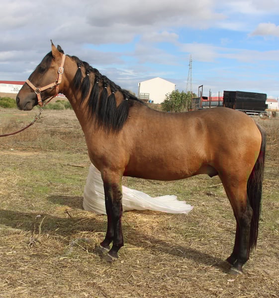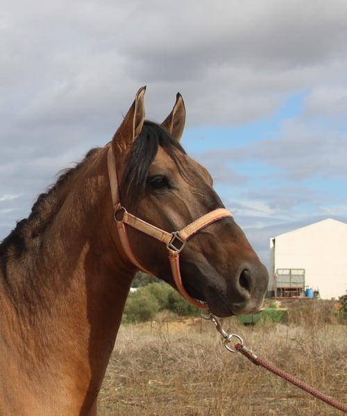 Dieser hübsche Kerl in der Sonderfarbe Falbe mit Aalstrich und Zebrabeine, ist wahrlich ein kleiner Hingucker. Er kennt Longe, ist Halfterführig, klar im Kopf und dem Menschen zugeneigt. Der junge Mann ist nicht gross hengstig, lieb im Umgang und stets problemlos händelbar. Gerne kann er auf Wunsch zu uns in den Beritt. Eine AKU kann in Auftrag gegeben werden. Der Transport wird international organisiert. Videos auf Anfrage