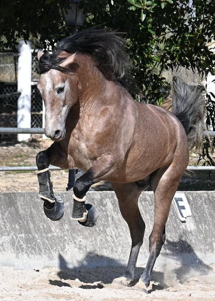 Dieser 2022 geborene, reinrassige PRE Hengst (Andalusier mit Rassenachweis der ANCCE), ist ein ganz besonderes Juwel. Ein königlicher Spanier wie aus dem Bilderbuch, der nur so vor Eleganz, Sanftmut, Lebensfreude und Klasse strahlt. Sein sehr barockes Exterieur, zusammen mit seinem weichen Blick und seinem feinen Kopf, lassen an seiner spanischen Reinheit nicht zweifeln. Kenner des PRE werden beim Anblick seiner Abstammung auch leuchtende Augen bekommen! Der schöne Jüngling ist ein Enkel von FER BAGO von FERRERO (Vater des mehrfachen Weltmeister Fer Bonachon de Eda) und diese Pferde stehen für spanisches Feuer, dass in perfekter Harmonie mit ihrem menschenfreundlichen Charakter gemischt wird. Mütterlicherseits ist er BOHORQUEZ gezogen- barocke Pferde, die klar im Kopf sind und sehr arbeitssam und vielseitig sind. Und diese hervorragende Abstammung, spiegelt sich in diesem Hengst wider- er ist ganz sanft, liebevoll und arbeitssam. Gleichzeitig versprüht er nur so Lebensfreude, die einen direkt ansteckt und so ein Pferd, macht einfach glücklich. Im Umgang ist er ein absoluter Gentleman und könnte sich nicht besser benehmen! Obwohl er noch nicht lange unterm Sattel ist (Winter 2025), muss er vorm Reiten nicht einmal ablongiert werden, weil er so artig ist, dass man direkt loslegen kann. Unterm Sattel ist er genauso ein Gentleman wie im Umgang, tut keinen falschen Schritt und will alles richtig machen. Trotz seines jungen Alters und kurzen Zeit unter dem Reiter, kristallisiert sich schon heraus, er wird ein richtiges Verlasspferd! Mit aktuell 165cm hat er schon eine stolze Größe. Bei dem Züchter leben die Junghengste lang in der Herde und werden langsam und schonend angeritten (doppelt gebrochene Wassertrense). Man merkt auch sofort in seiner Klarheit und Ruhe, dass wirklich alles richtig gemacht wurde in der Aufzucht und wie er gearbeitet/behandelt wird. Er ist gekört, hat aber noch nicht gedeckt. Seine Bewegungen haben Dressurpotenzial und er ist sehr leichtfüßig und biegsam, was bei so barocken Exemplaren, nicht selbstverständlich ist ;) Dass die robuste Aufzucht auch gesund war, wird durch seine Röntgen bestätigt, die alle Klasse 1 sind (Dezember 2025) und selbstverständlich gerne zur Verfügung gestellt werden. Es besteht die Möglichkeit, dass er vor Ort kastriert wird, für alle, die keine Hengste halten können. Der weitere Beritt vor Ort wird auch angeboten. Ein wahres Traumpferd mit gutem Charakter, aus bestem Hause und höchster Qualität. Preis der Qualität entsprechend sehr fair! Sein Standort ist Mallorca. Videos und Abstammung gerne auf Anfrage. Gerne organisiere ich vor Ort eine AKU, Beritt, Kastration, Transport oder auch ihre Reise, sollten Sie persönlich zum Anschauen kommen. Details dazu gerne auf meiner Seite oder im Gespräch. Saludos aus Spanien