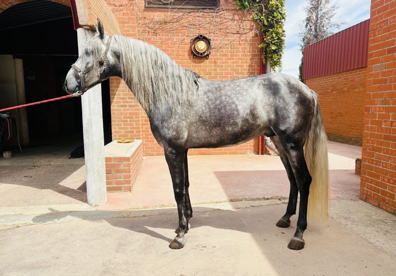 ✨ Andalusian Cross (PRE x Lusitano) ✨ This stunning stallion stands at 16h (163 cm) and combines beauty with a truly sweet character. Although a stallion, he carries himself with the temperament of a gelding – friendly, affectionate, and easy to handle. In the arena, he shows balance and suppleness, working lateral exercises with ease. Outside, he is equally enjoyable, making him a wonderful companion for relaxed rides on trails or in company with other horses. A kind-hearted partner with plenty of quality – ready to bring joy both in and out of the arena. 📞 WhatsApp : +34 660 698 281 We also have a wide variety of horses available at different training levels and budgets.