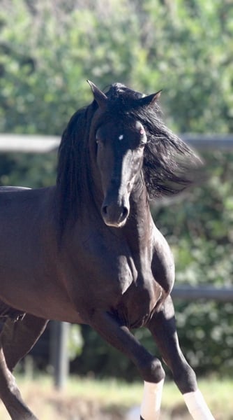Cheval de rêve noir exceptionnellement beau avec beaucoup de fanons, de magnifiques mouvements et une conformation parfaite ! Facile à monter, calme, et extrêmement proche des humains ! Un ami pour la vie ! Photos et vidéos disponibles !